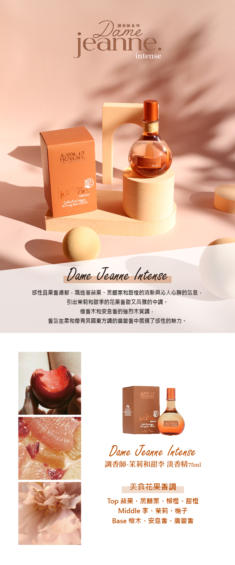 ◆商品名稱:Dame Jeanne 調香師-茉莉和甜李 淡香精75ml
