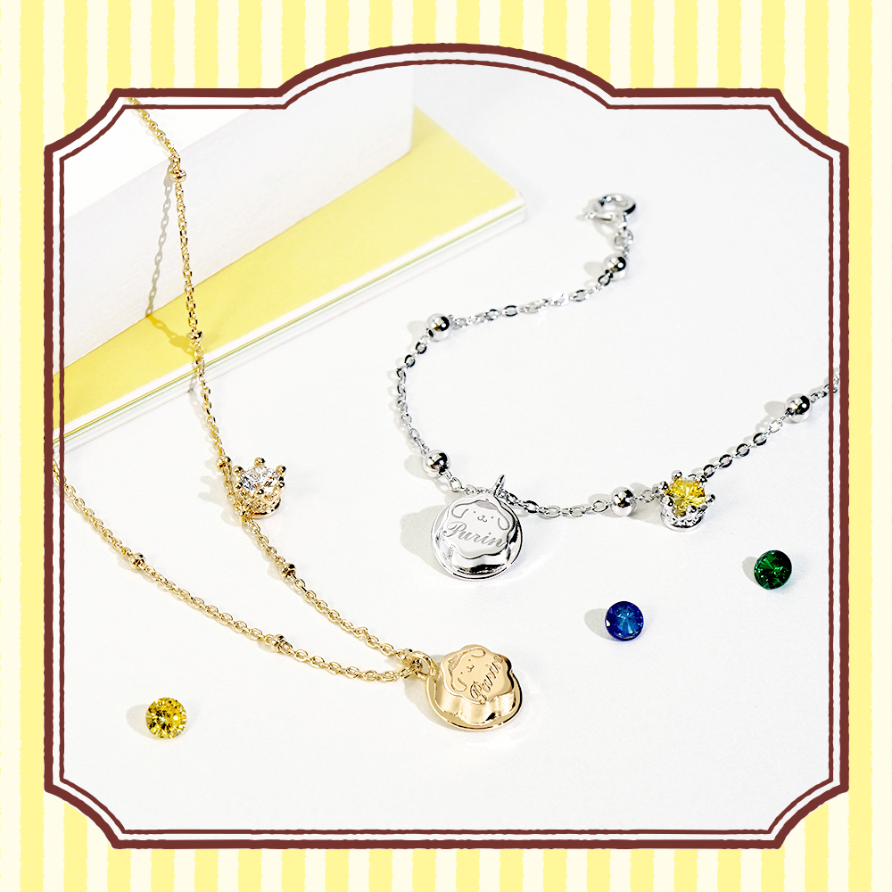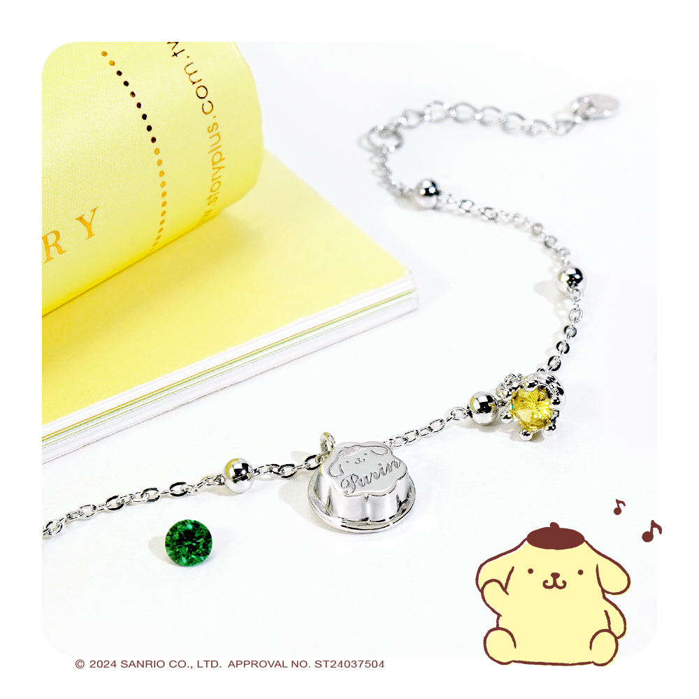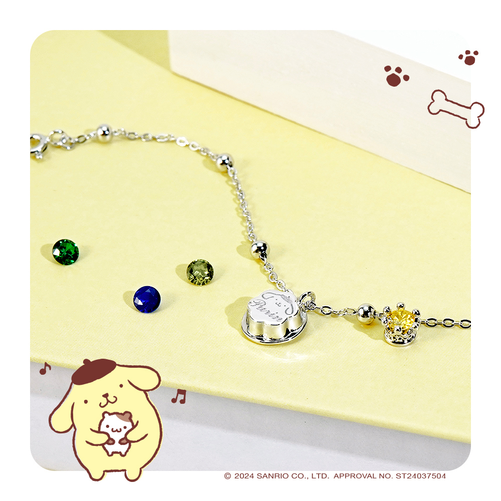 STORY故事銀飾-PomPomPurin 誕生石系列-布丁狗焦糖布丁誕生石純銀手鍊