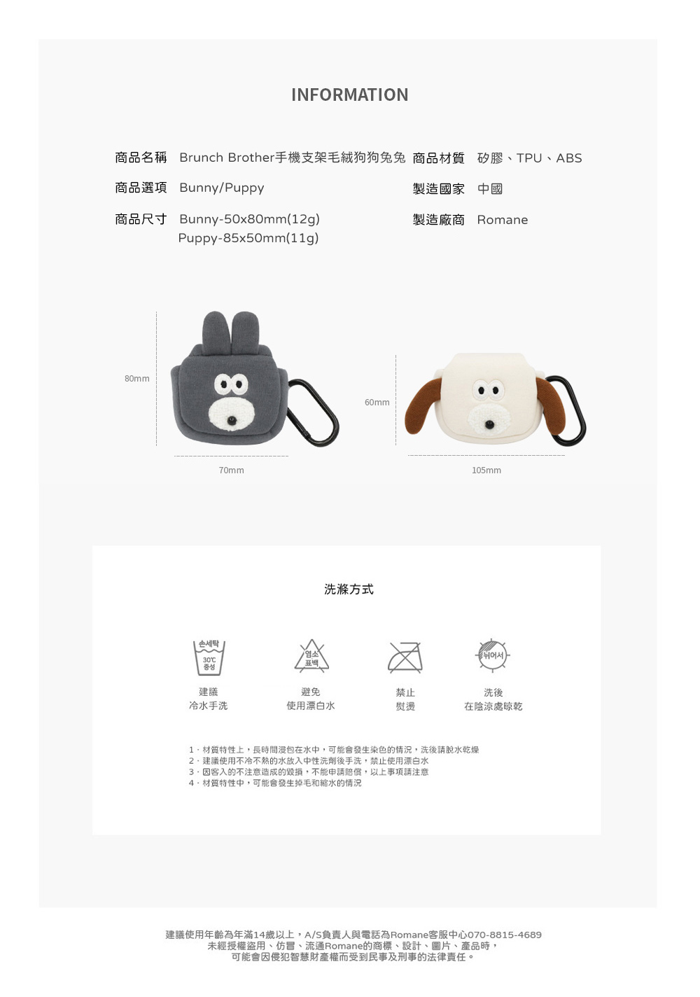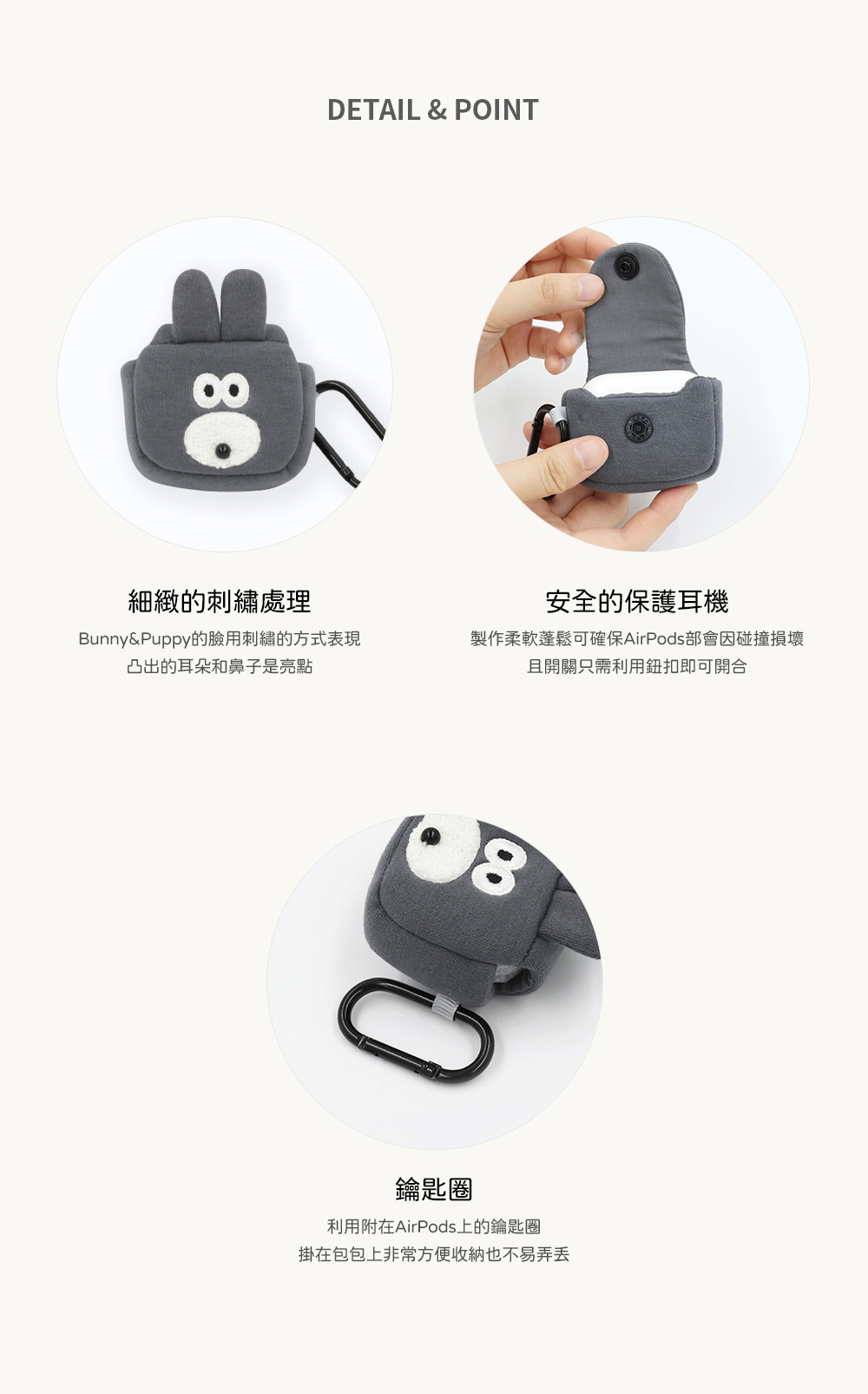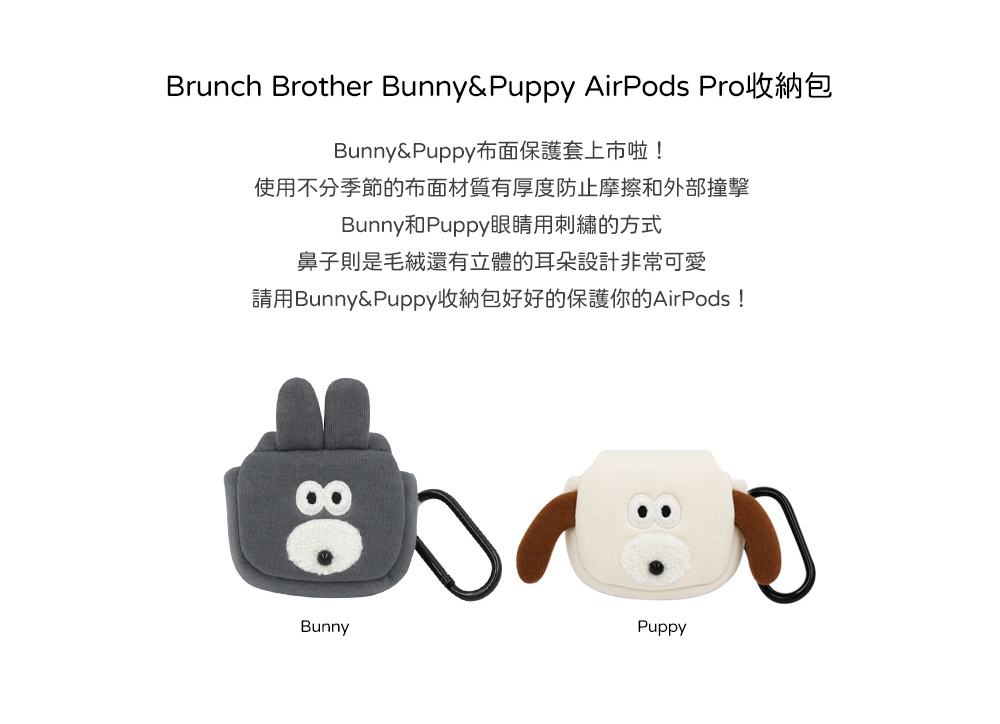 ▪️ 商品內容名稱:【Romane Brunch brother】 Airpods 1/2代 狗狗兔兔 布面 耳機保護套 耳機收納包貨號:狗狗8809694717766 / 兔兔8809694717636材質:棉/聚酯纖維/鋼功能:收納耳機尺寸:Bunny兔兔 68x45mm (15g)、Puppy狗狗 45x90mm(15g)