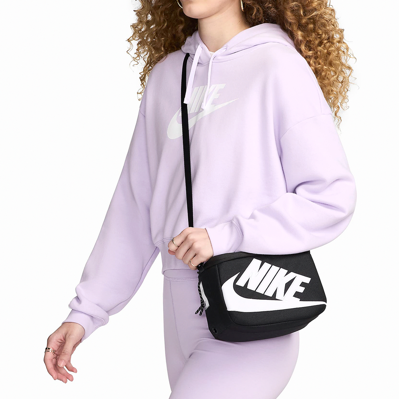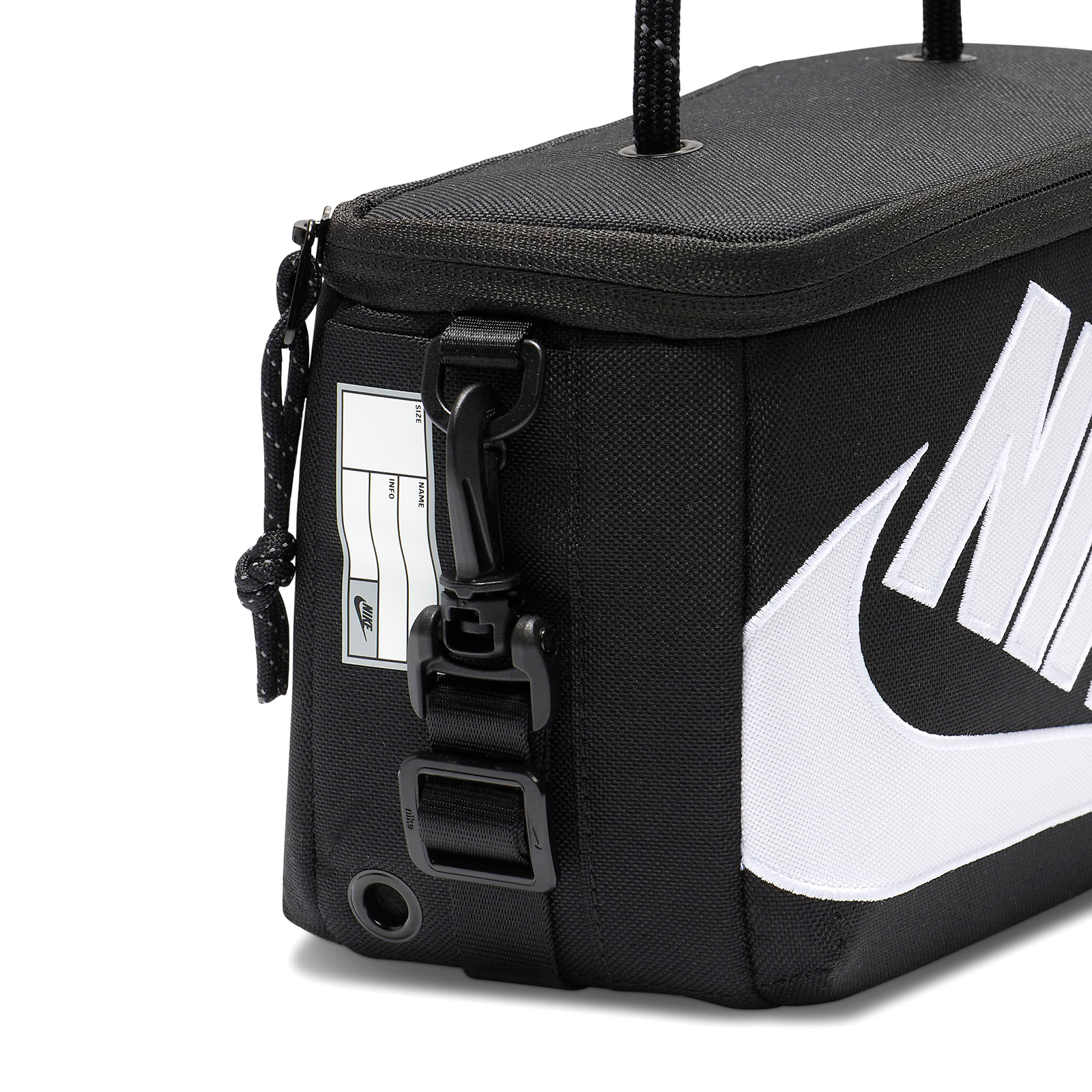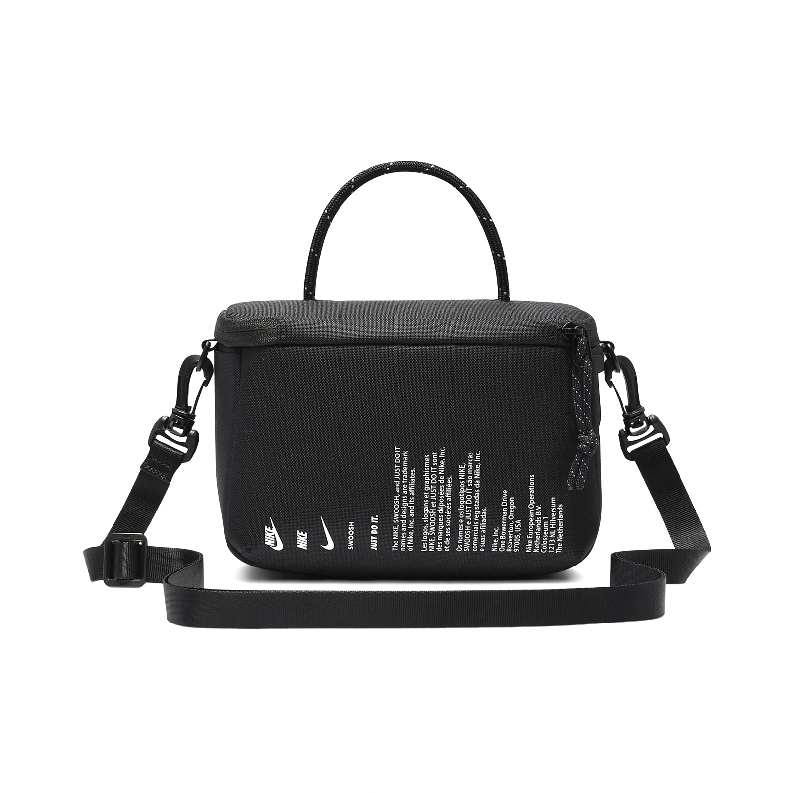 品牌: NIKE型號: FN3059-010品名: Mini Shoe Box CrossBody Bag* 拉鍊隔層空間充足,可擺放手機、錢包、鑰匙等物品,還有 2 個內袋可收納必備小物