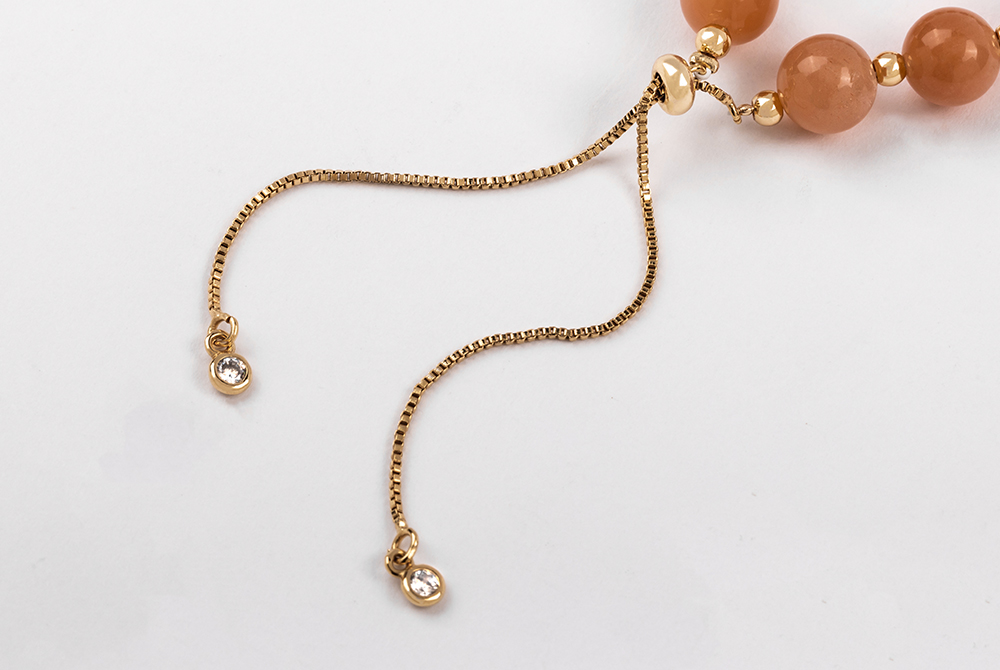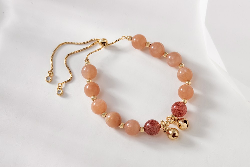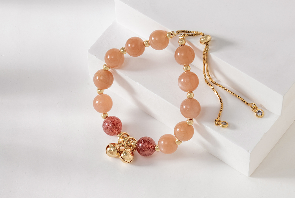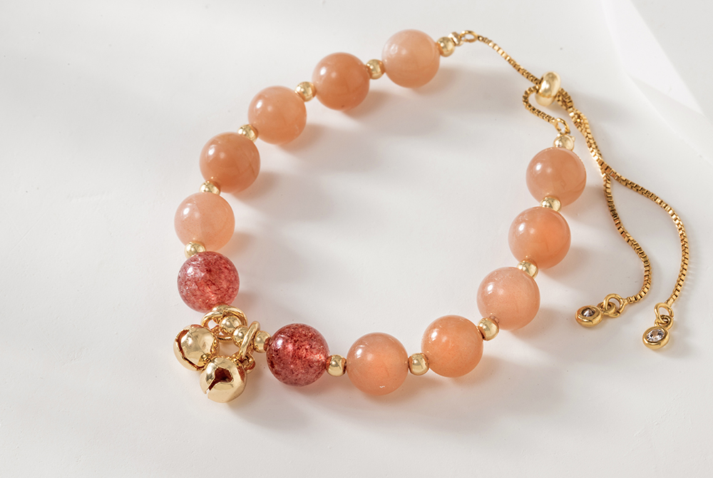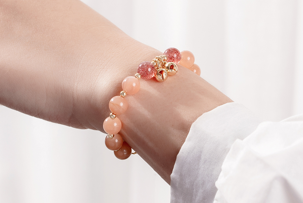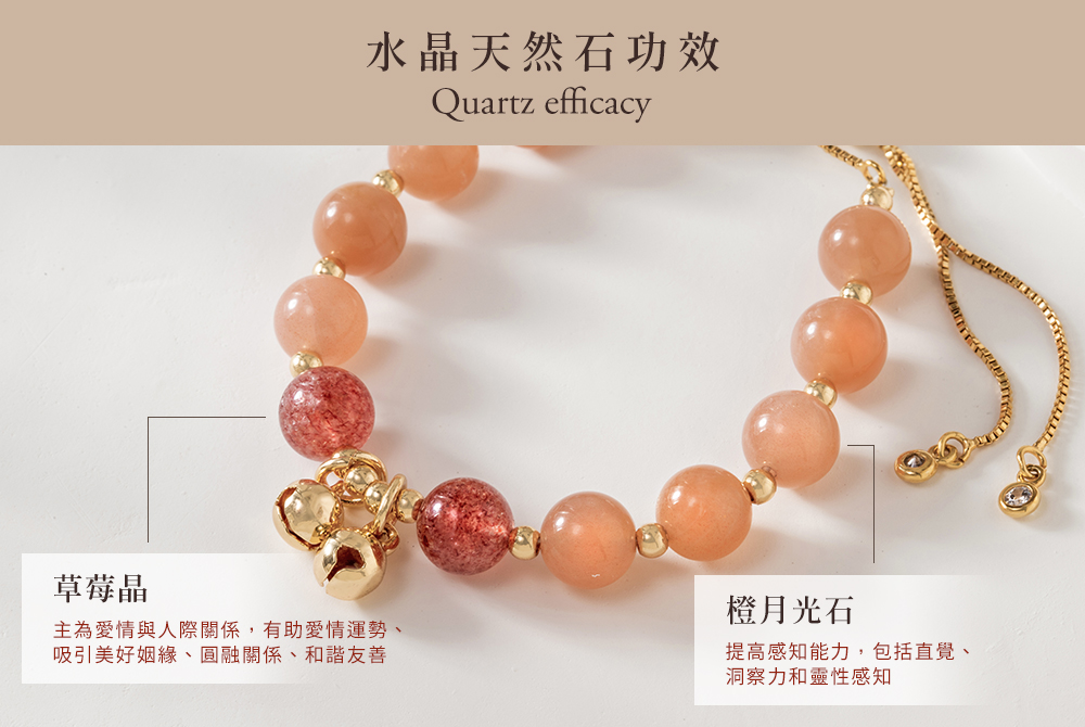 精緻的草莓晶和橙月光石天然石戴在手上讓妳擁有莓好心情