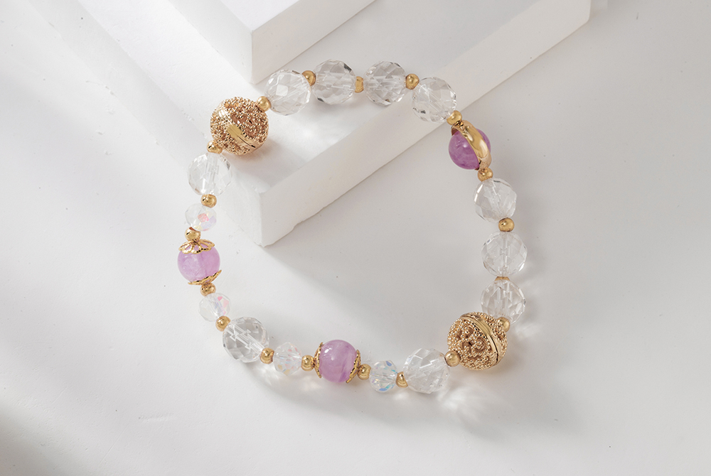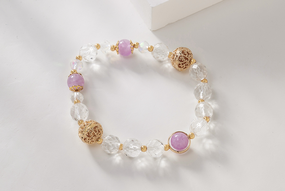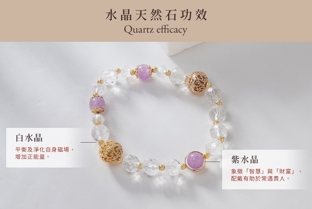 浪漫粉漾,絢麗奪目 粉漾絢光手鍊融合了白水晶與紫水晶的雙重美麗是浪漫與能量的完美結合