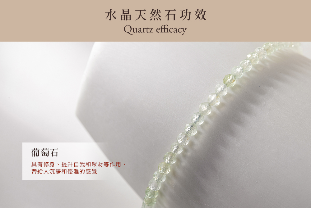 種類:手鍊腕圍(攤開平量,不含延長鍊):16cm延長鍊:5cm水晶/珍珠直徑大小:葡萄石約0.3cm材質:水晶+銅合金