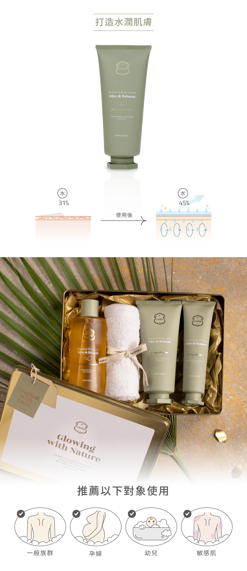容量:植物滋潤膏50g+乳液200g+紙袋
