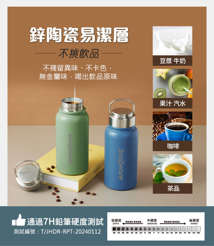 鋅陶瓷易潔層,保溫升級,更好清洗杯內飲品不氧化、無金屬味超大容量,戶外旅行運動,一瓶就Go上蓋為304優質不鏽鋼材質,無塑化劑便利提把,好拿好攜帶