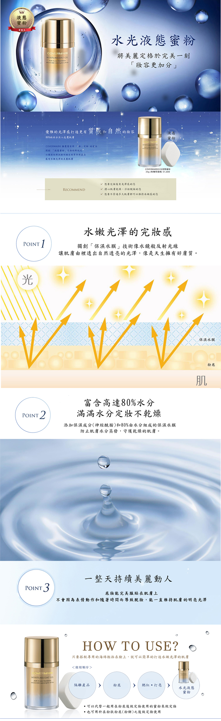 不是粉狀,而是液狀的蜜粉 粉底不再黏膩和粉感立即打造光亮潤澤妝感的液態蜜粉