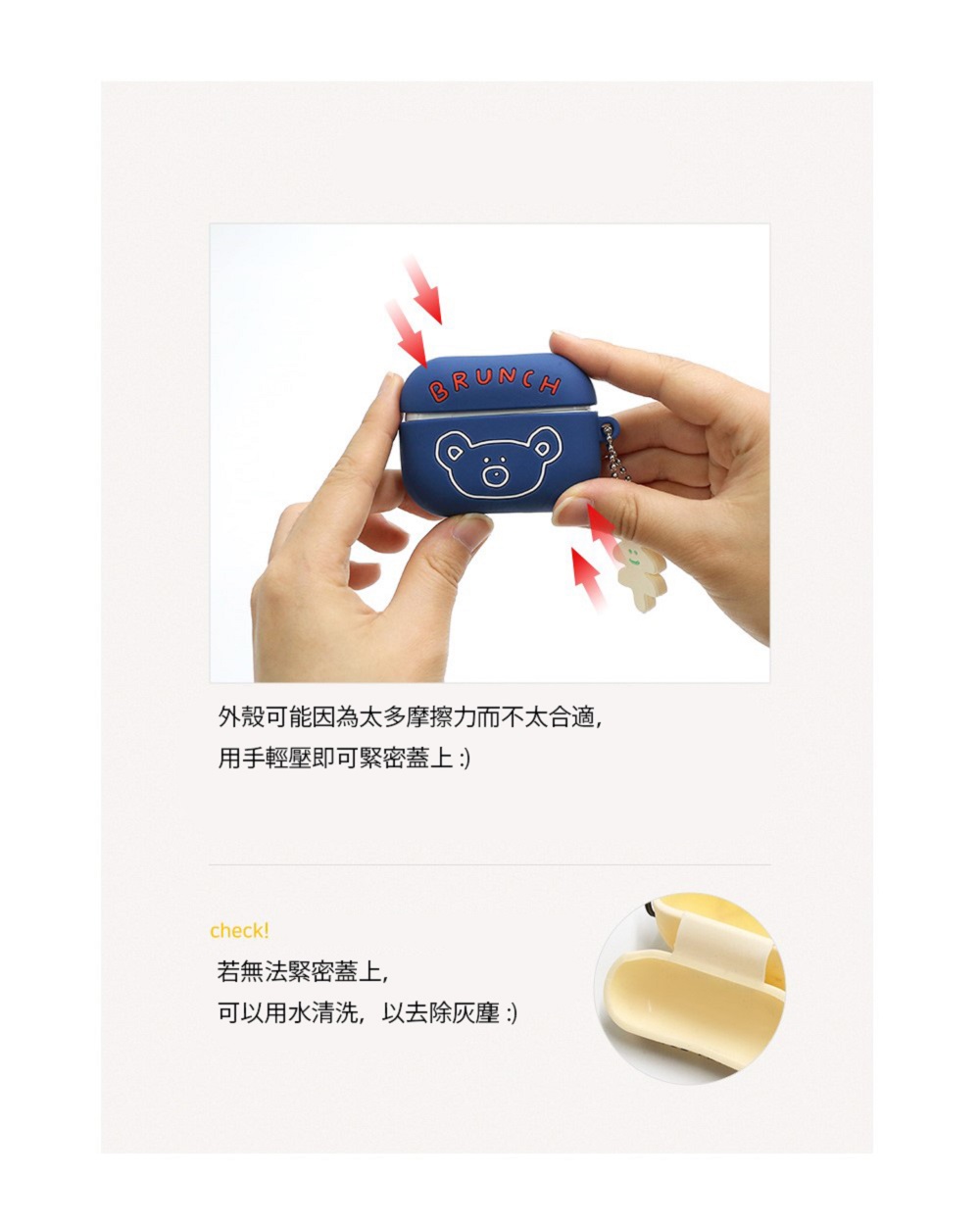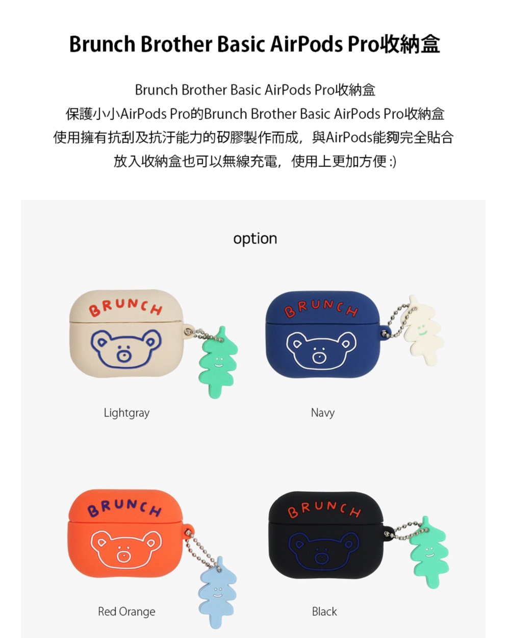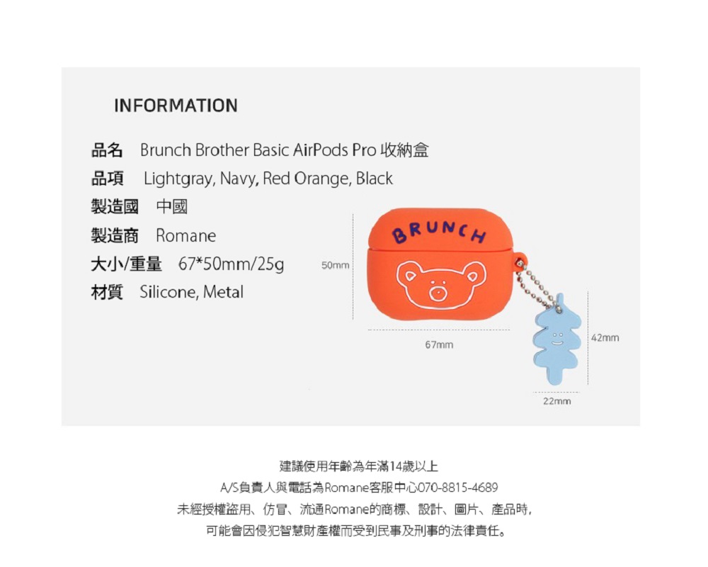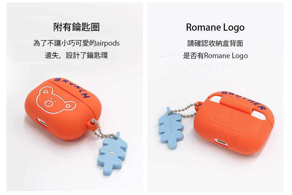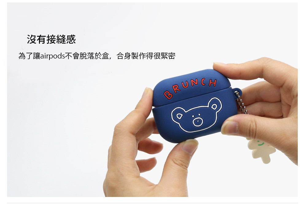 ▪️ 商品內容名稱:【Romane Brunch brother】Airpods Pro 經典款小熊 耳機保護套貨號:深藍8809694712853 / 橘紅8809694712860 / 黑色8809694712877 / 米白8809694712846材質:矽膠功能:收納耳機尺寸:6.7 x 5cm