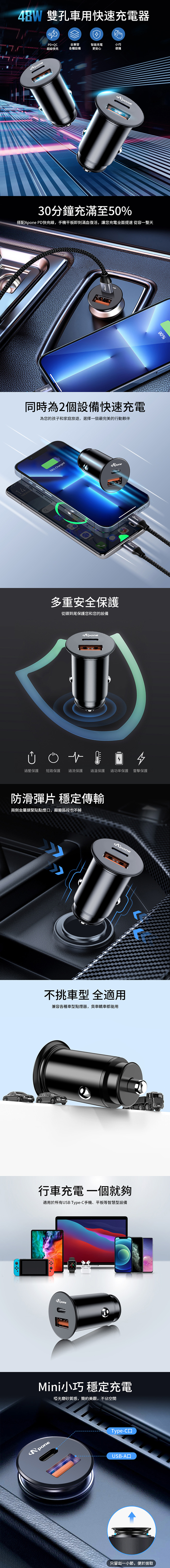 【Apone 崇鼎科技】48W PD+QC 2孔汽車點菸用電源供應器