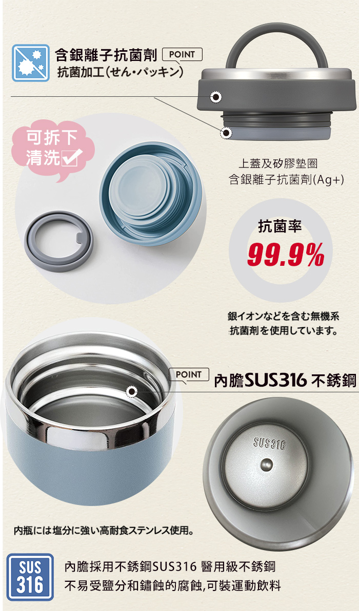 口徑:55(mm)尺寸:8.3x8.3x17.3(cm)重量:0.26(kg)材質:內瓶-不鏽鋼 SUS316 瓶蓋-聚丙烯樹脂 密封圈-矽膠 防撞墊-SEBS橡膠保溫效力:1小時84℃以上,6小時60℃以上保冷效力:6小時12℃以下產地:日本孔雀-中國廠