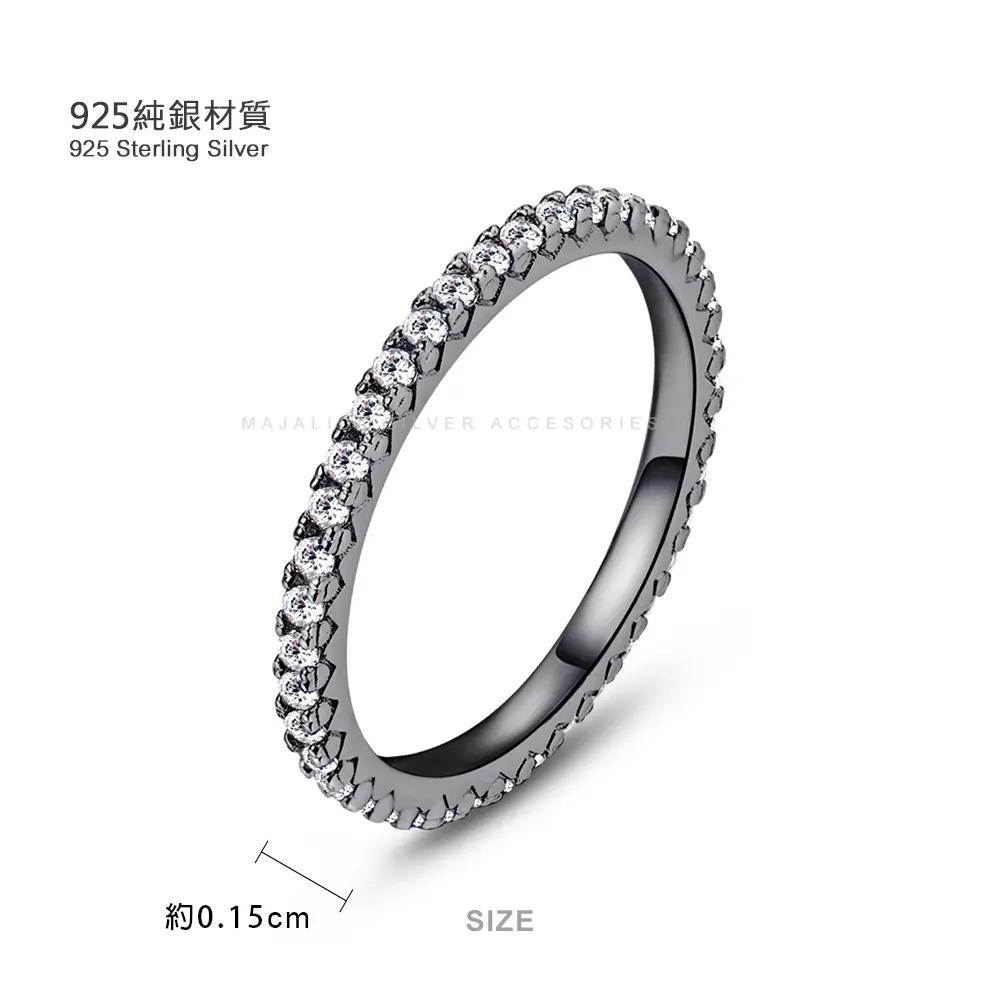 名稱:925純銀戒指.線戒.鍍黑金.G款.紫紅鋯.開運.無禮盒