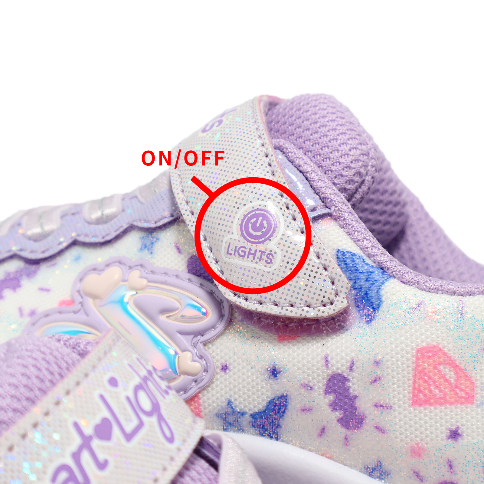 品牌: SKECHERS型號: 319509-LLVMT品名: S Light-Flutter Heart Lights版型: 版型正常* 燈鞋開關位置詳見圖片說明。