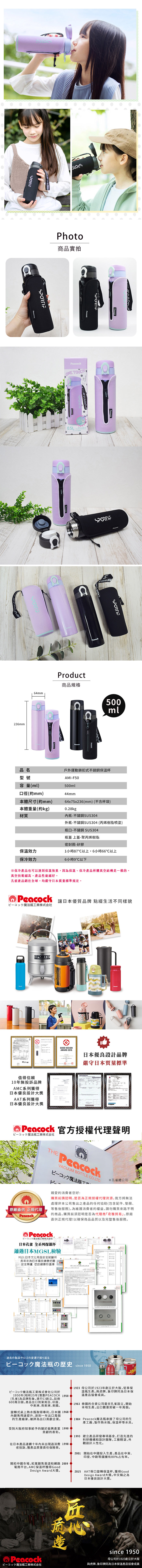 日本孔雀Peacock母公司於1923年創立於大阪,從事保溫瓶生產。與虎牌、象印牌同為日本保溫產品協會成員。日本孔雀,百年的匠心質造,有情懷有態度,成就百年品牌,值得您安心使用。