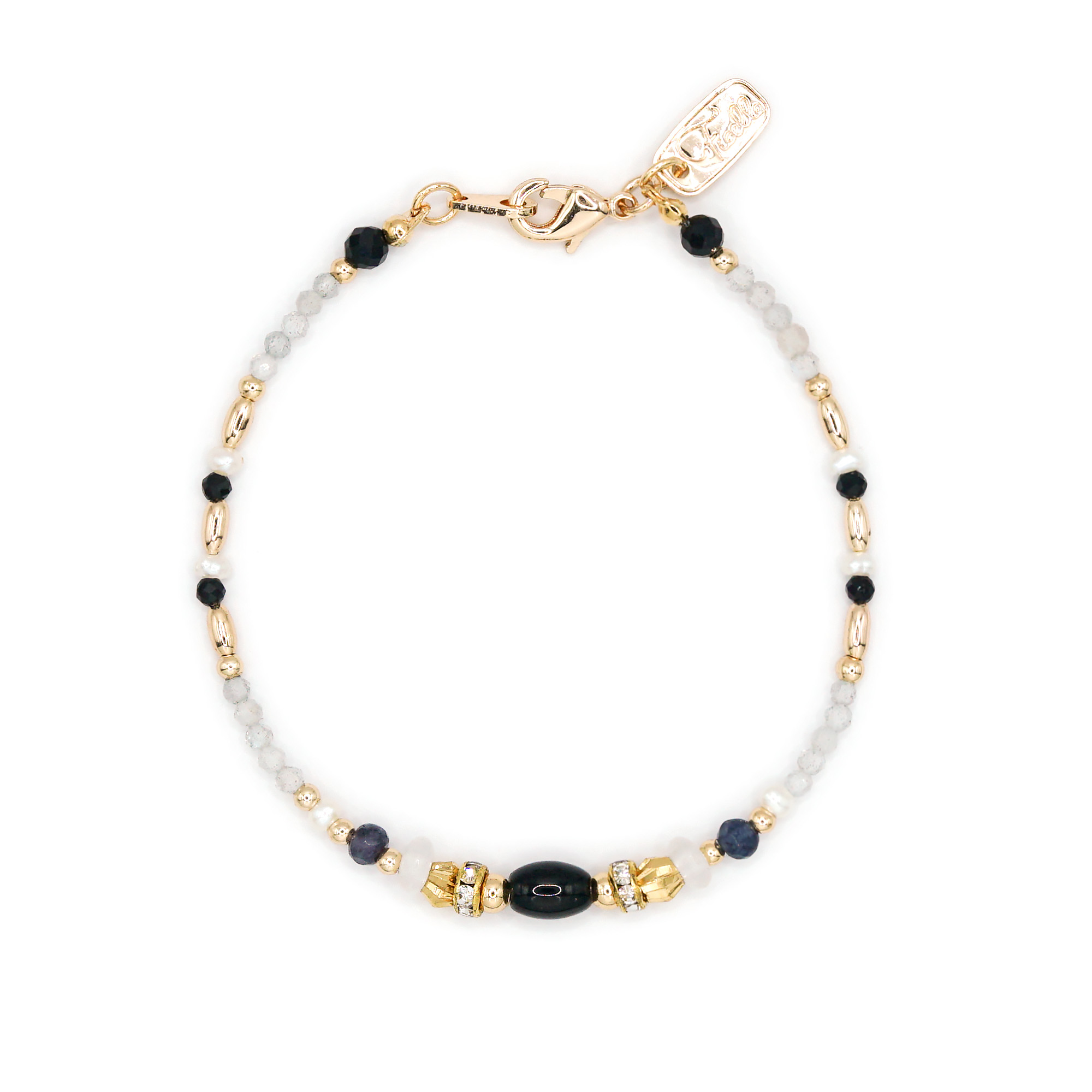 黑瑪瑙、拉長石、淡水珍珠、尖晶石、白玉、黃銅鍍18K金