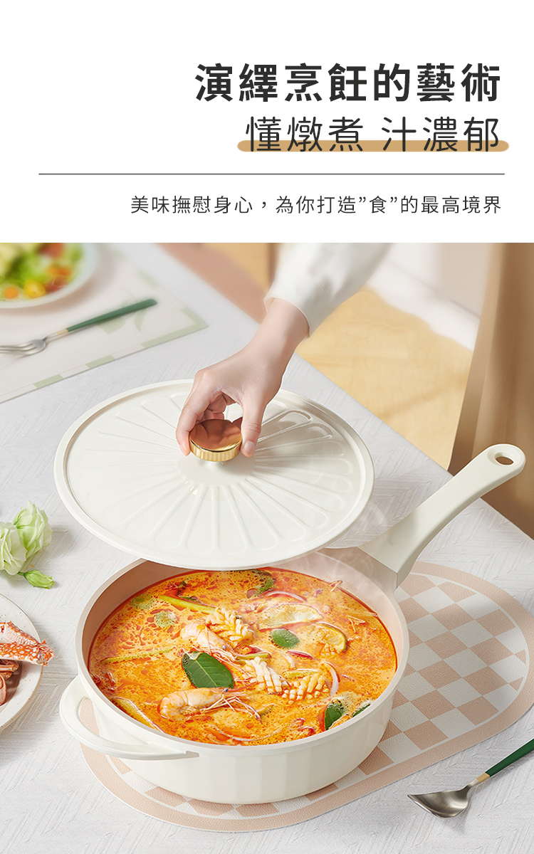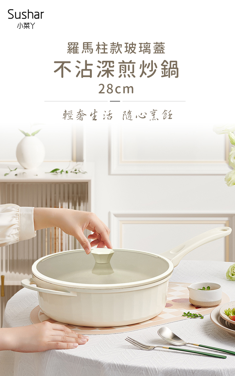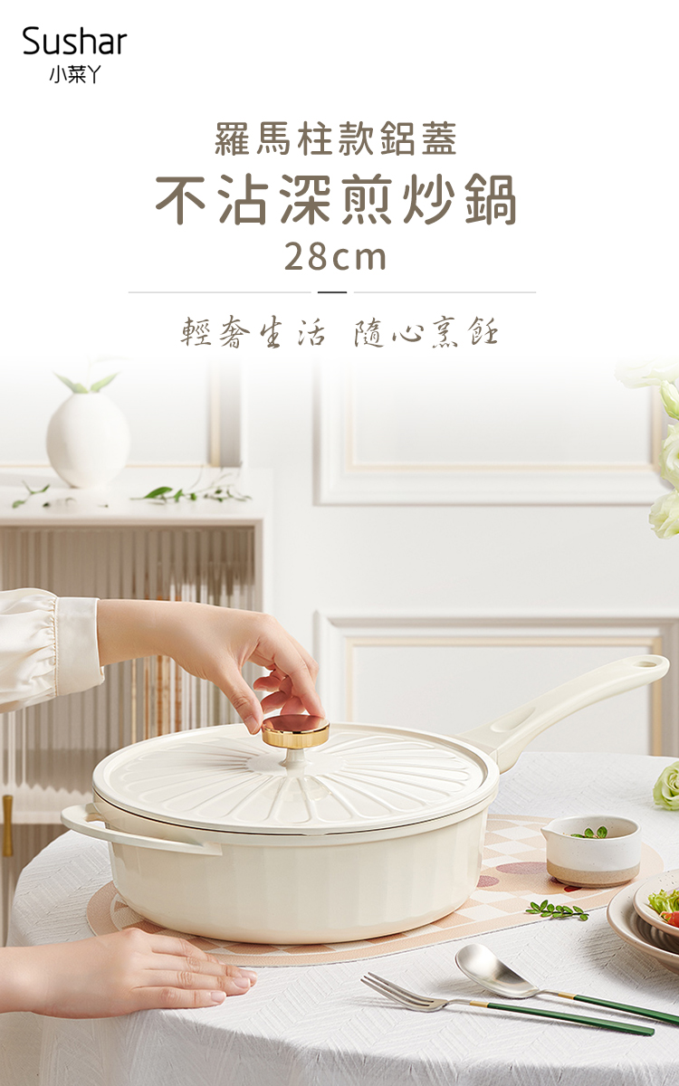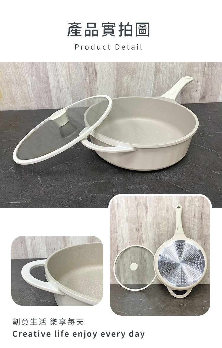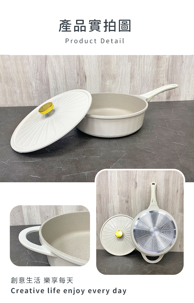 ●羅馬柱款,玻璃蓋/鋁蓋●不沾塗層,方便清洗 一擦即淨●厚底薄壁,耐磨耐用壽命更長●適用於所有烹煮爐具,IH全適用對應設計●磁通鍋底,導熱均勻快速
