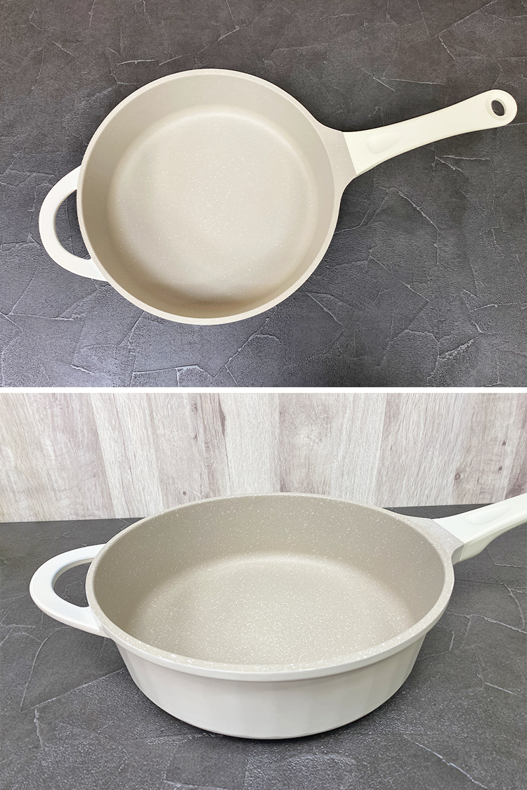 ●鍋身不沾塗層高密度表面,食物與鍋面接觸,可達不黏效果