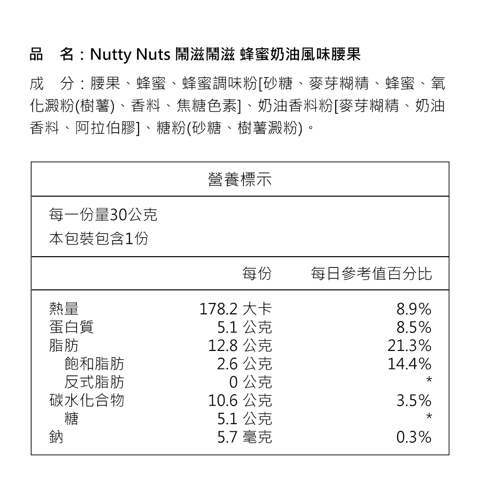 ►鬧滋鬧滋 蜂蜜奶油風味腰果 商品資訊