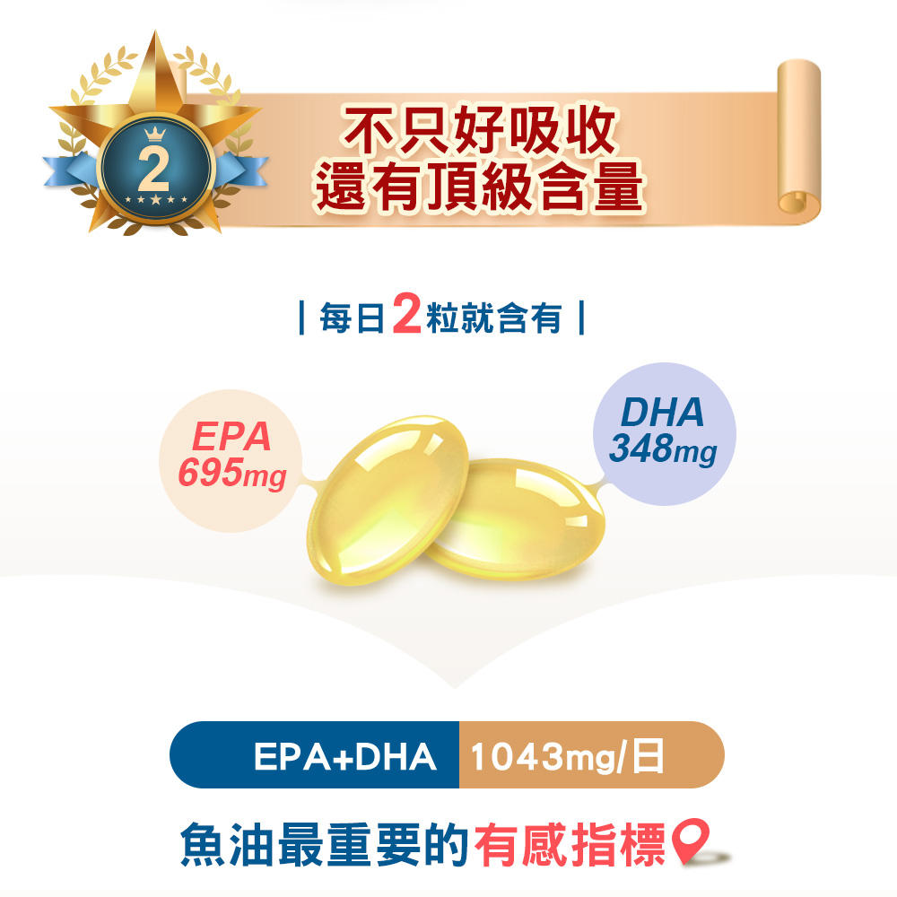 每兩粒就含有EPA+DHA 1043mg