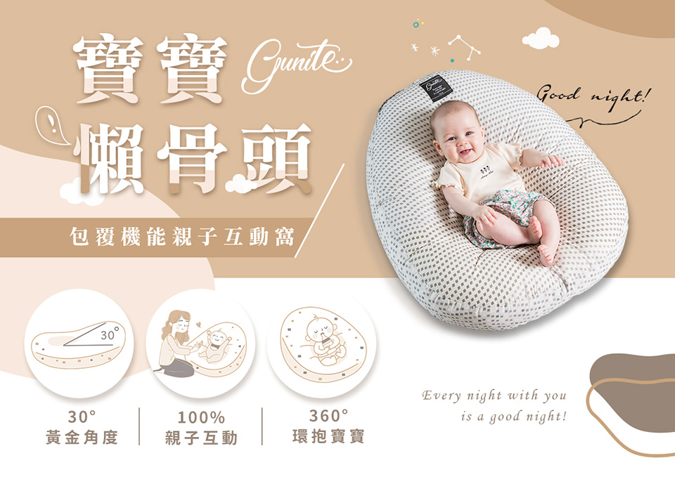 100%親子互動30°黃金仰角設計,不僅提升寶寶的舒適感,更能促進媽咪與寶貝的親子關係。理想的餵奶角度,讓寶寶在餵奶時可以與媽媽保持視線接觸,增加彼此的安全感和親密感。同時,gunite寶寶懶骨頭確保媽咪不再需要彎腰即可輕鬆餵奶,減輕了腰背的酸痛,使整個餵奶過程更加輕鬆簡單。
