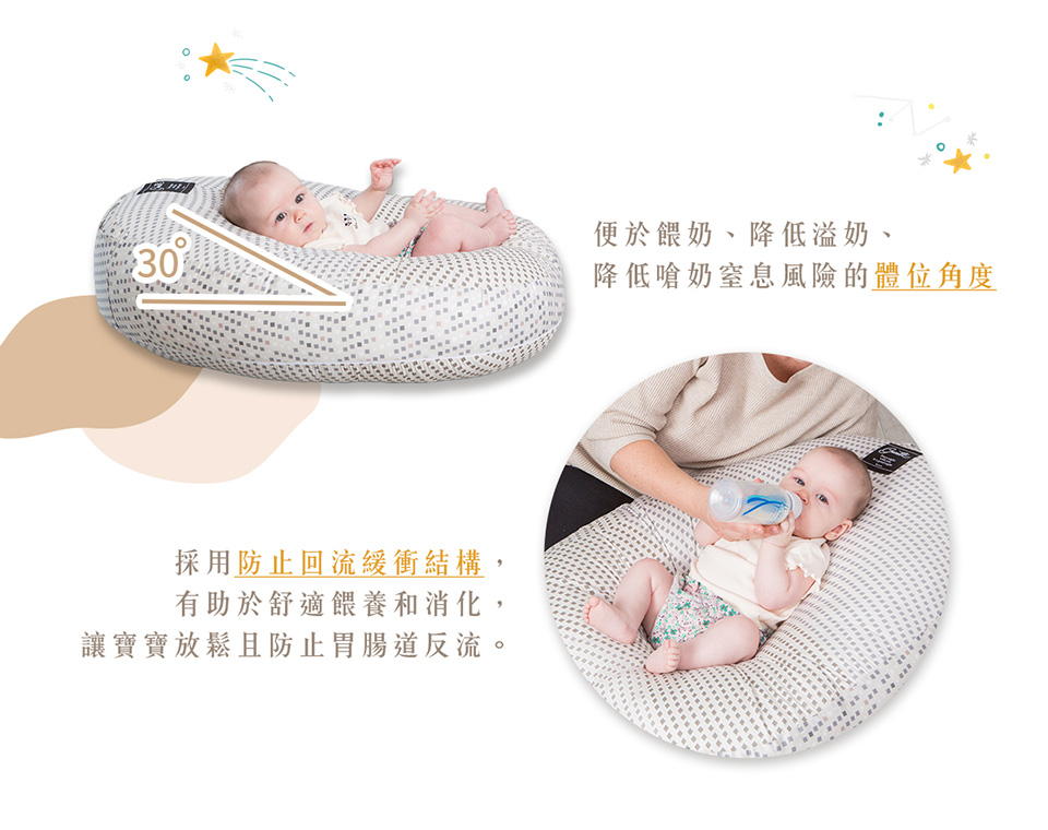 30°黃金角度gunite寶寶懶骨頭採用獨特的30°黃金角度,專為寶寶的舒適和安全考量。完美角度適合餵奶,能有效降低溢奶和嗆奶的風險,同時有助於寶寶的消化。更進一步採用防止回流緩衝結構,讓寶寶在喝奶的過程中享受更有安全感的餵養,並防止胃腸道反流。