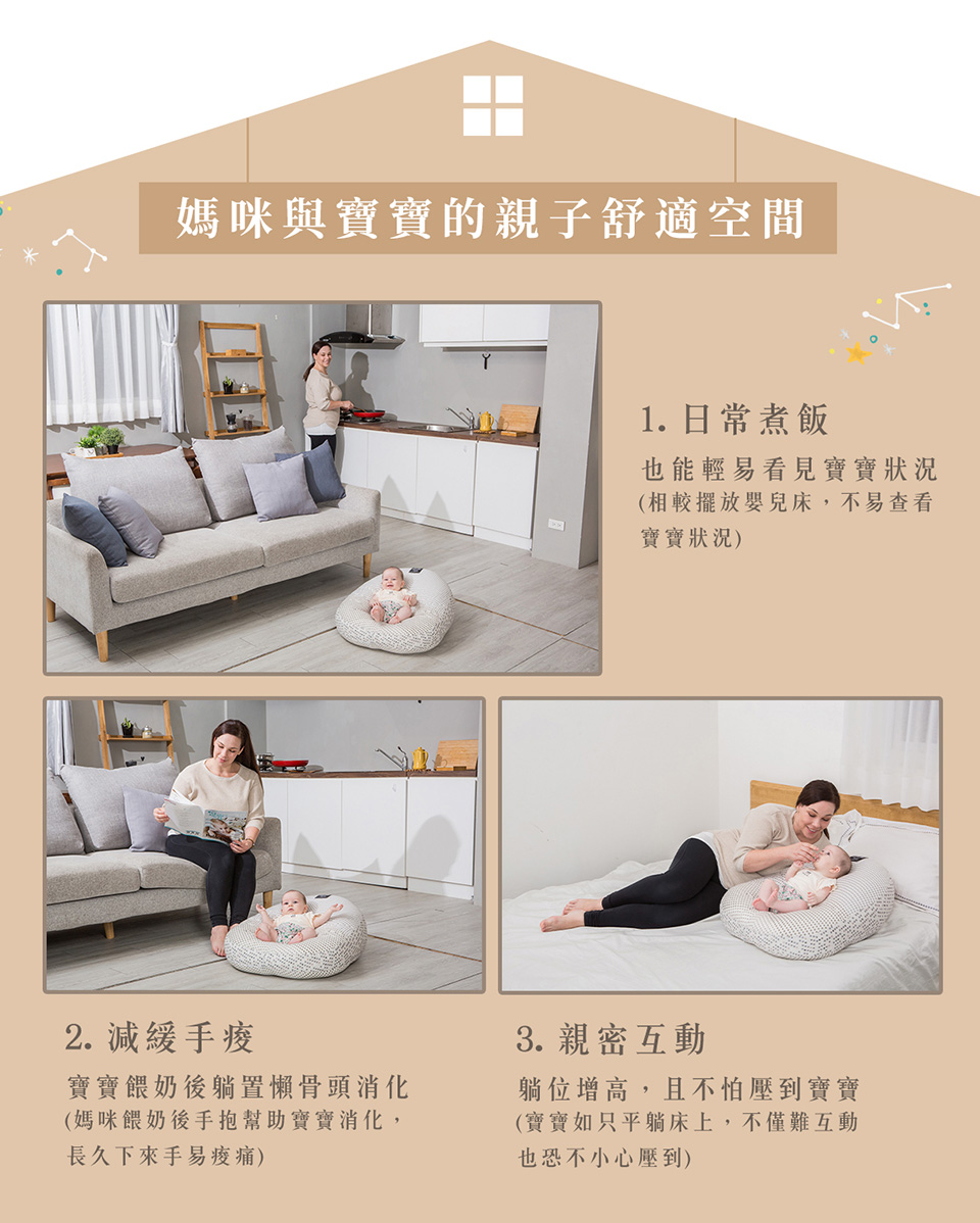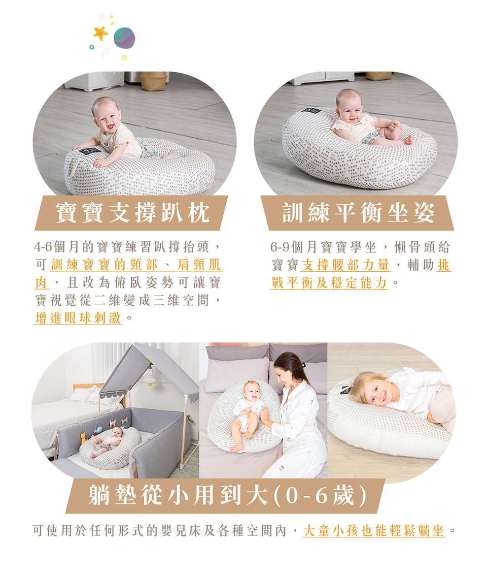 不僅新生兒能夠使用,多功能用途更能陪伴寶貝0-6歲,學趴、學坐只需要gunite寶寶懶骨頭就能搞定。