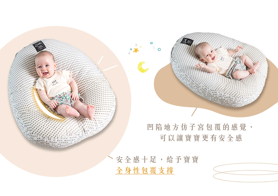 360°環抱寶寶gunite寶寶懶骨頭凹陷處仿子宮包覆的設計,提供全方位的包覆和支撐,讓寶寶在成長過程中感受到100分的安全感。360°全身包覆提供了溫暖的觸感,讓寶寶彷彿置身在媽媽的懷抱當中,帶給寶寶滿滿的安全感與舒適感。