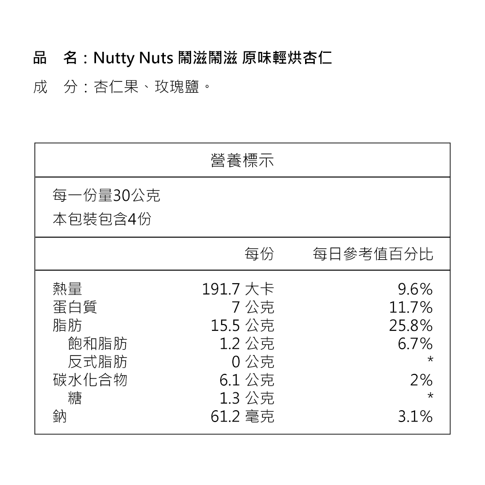 ►鬧滋鬧滋 原味輕烘杏仁果 商品資訊