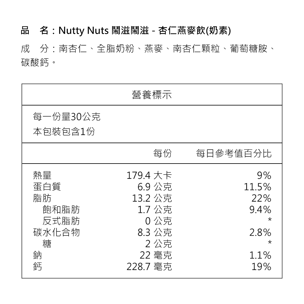 ►鬧滋鬧滋 杏仁燕麥飲 商品資訊