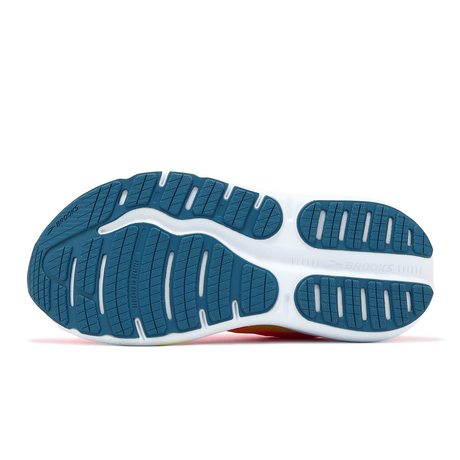 * 提高轉換性較低的足尖差,以及Glide Roll 流暢滾動科技的鞋底搖滾刻紋設計,協助腳跟到腳趾的轉換動作,讓跑步流暢、有效率。