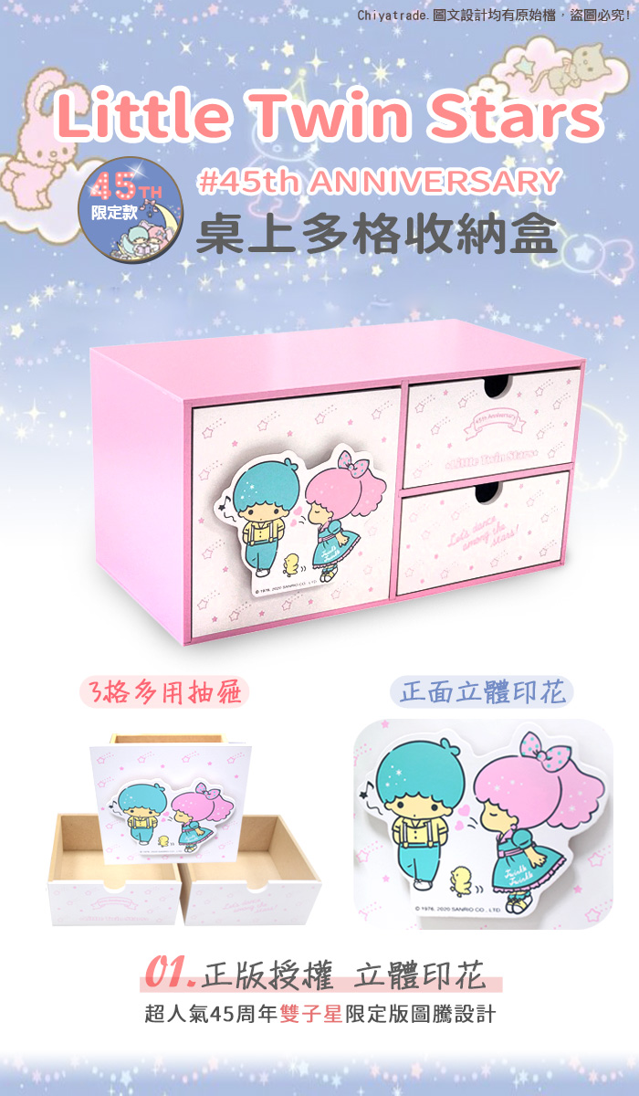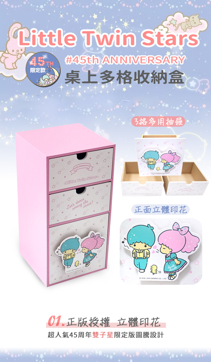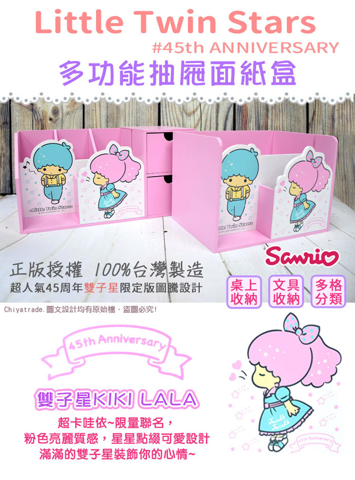●精心設計可放抽取式面紙實用度大提升!●辦公用品收納、文具收納、化妝品、3C用品等收納●限量聯名45周年雙子星限定版圖騰設計