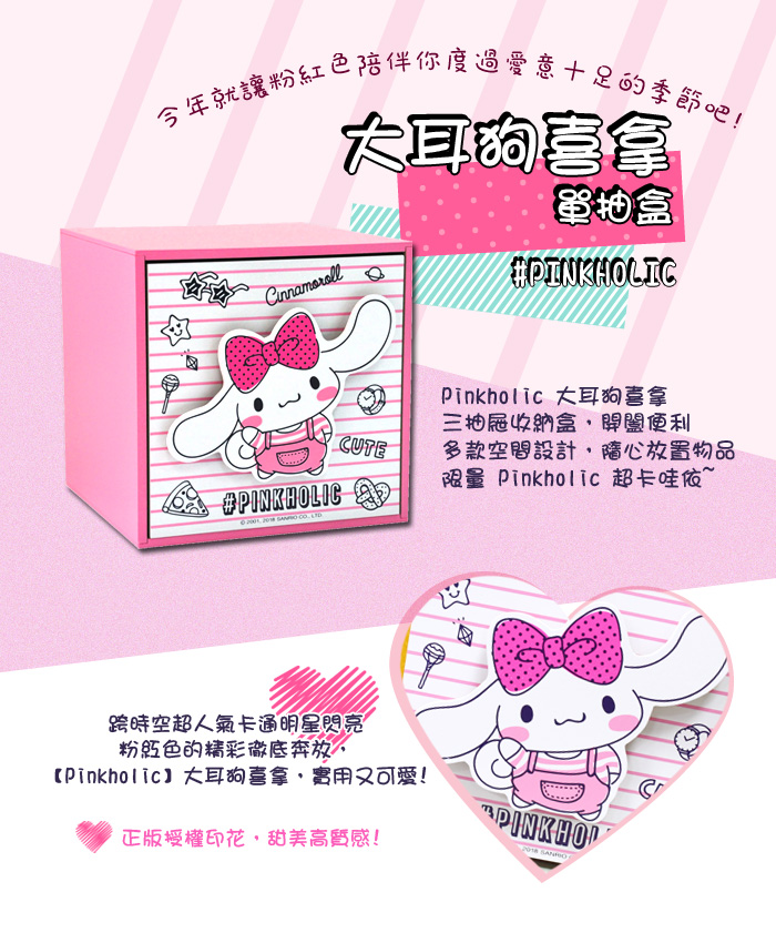 ●限量Pinkholic 大耳狗喜拿,超卡哇依~●單抽屜收納盒,開闔便利●多款空間設計,隨心放置物品