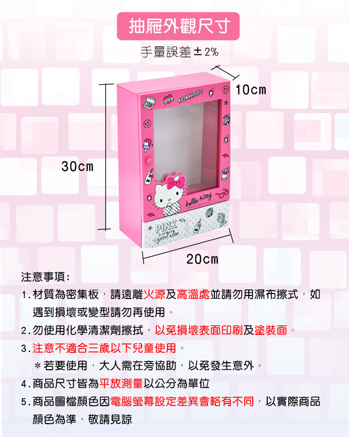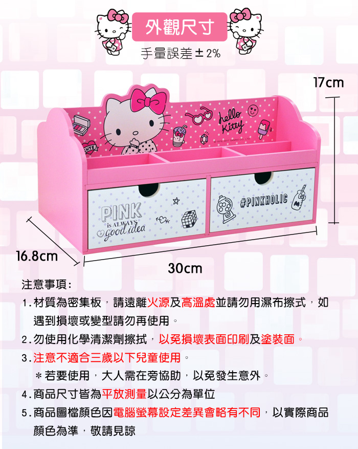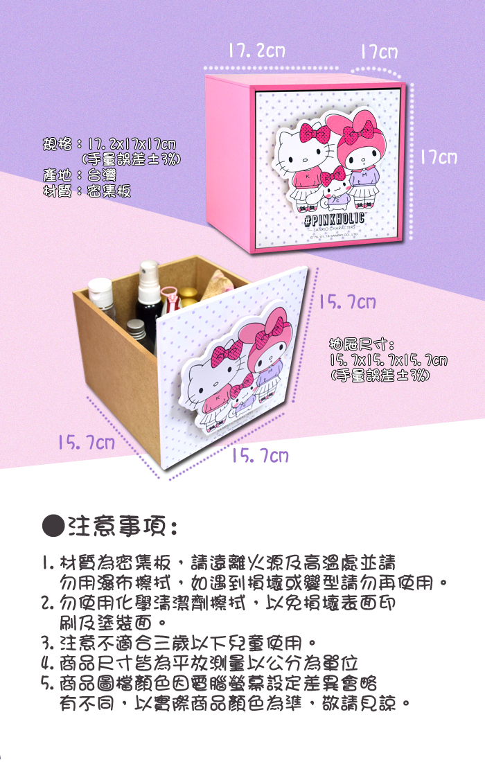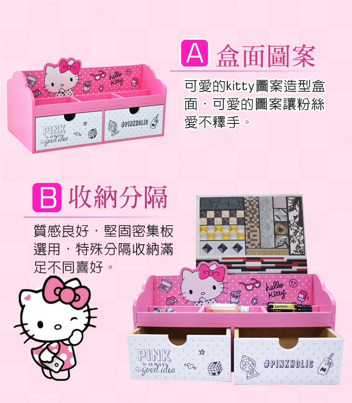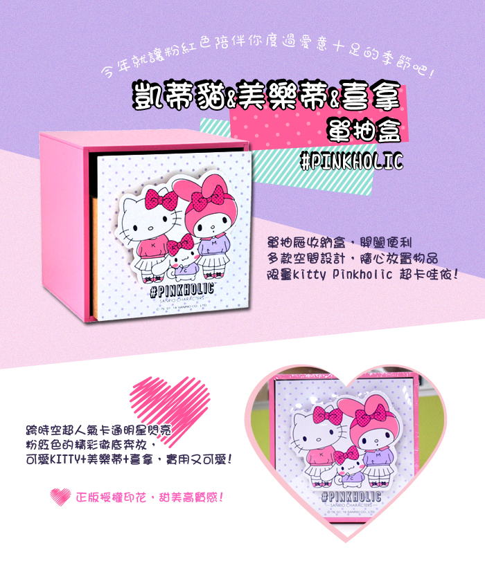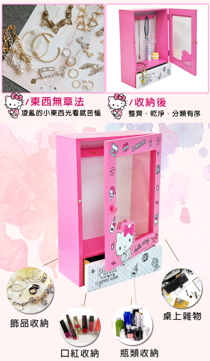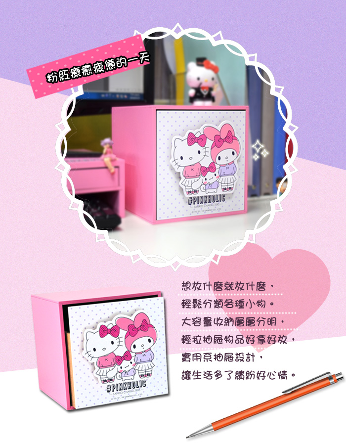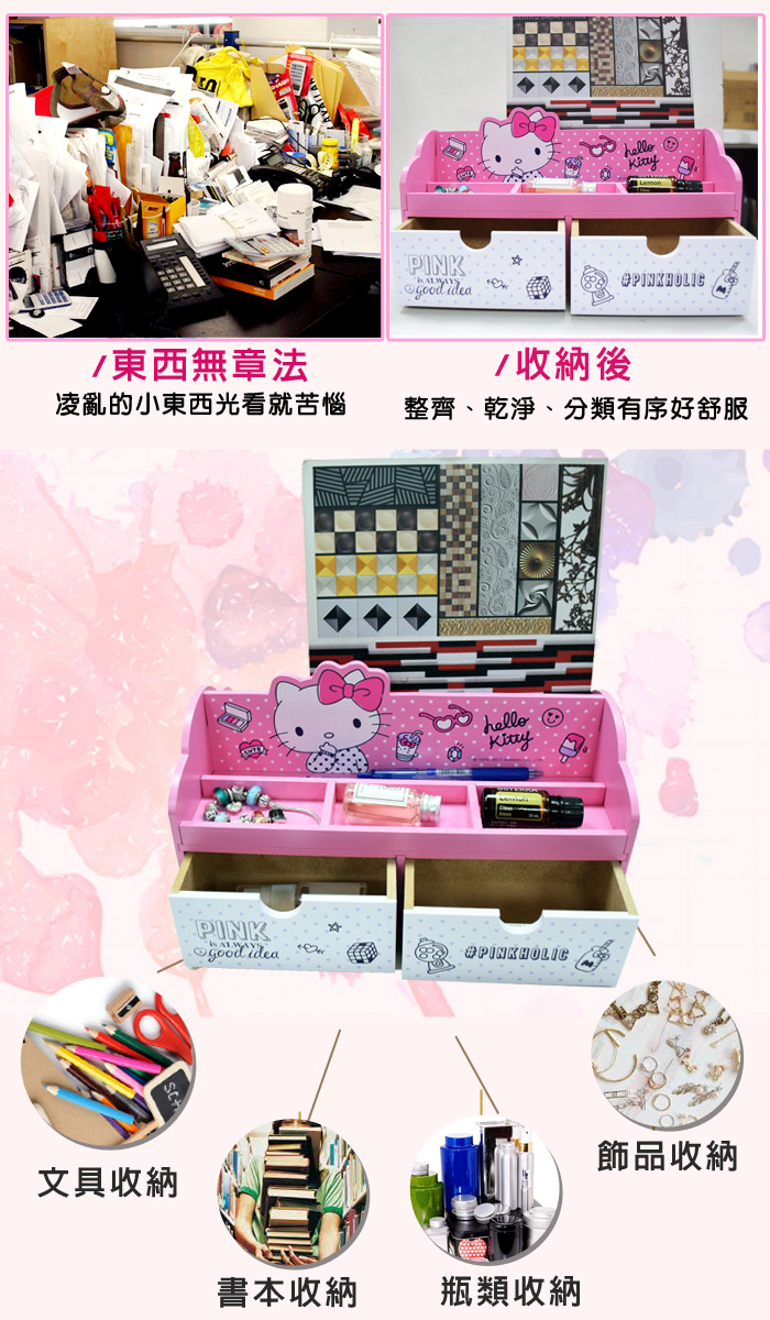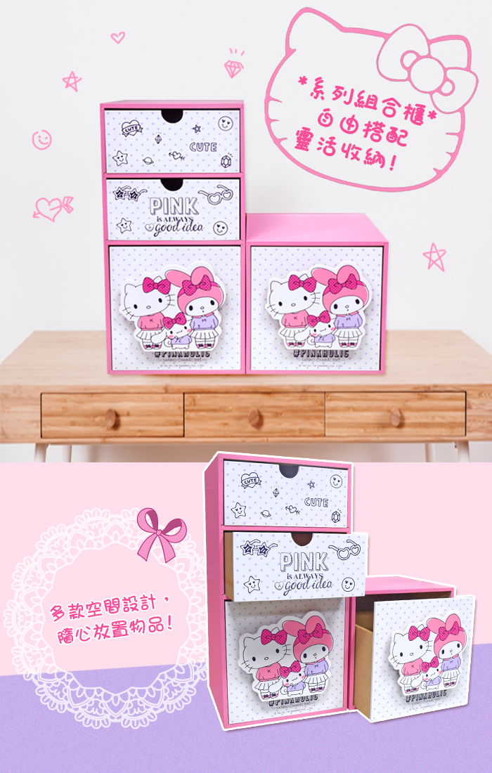 跨時空超人氣卡通明星閃亮組合,粉紅色的精彩徹底奔放,今年就讓粉紅色陪伴你度過愛意十足的季節吧!可放手機、化妝品、飾品、文具用品、書本雜誌想放什麼就放什麼,輕鬆分類各種小物多功能整理方式可收納,輕拉抽屜物品好拿好放,讓生活多了繽紛好心情。