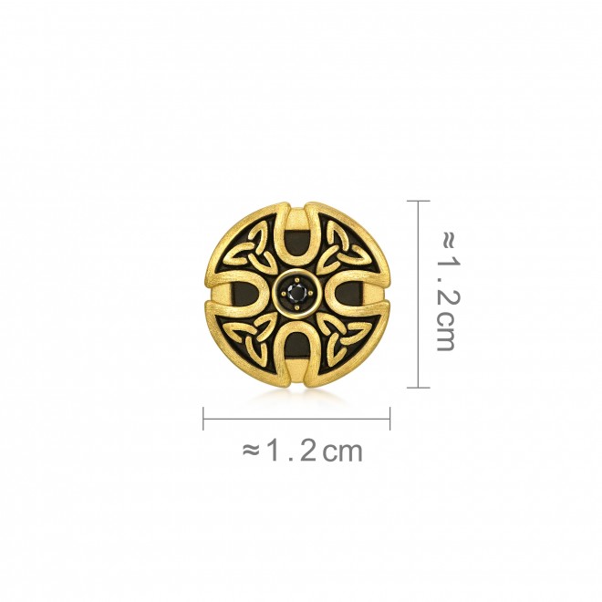 足金串珠以盾牌為設計造型,採用酷黑黃金工藝,呈現深刻紋理與質感,圖騰四方結合凱爾特「三位一體」的神聖符號,蘊藏無窮、循環及永恆的深遠寓意,中間特別鑲有黑色鑽石,閃耀酷黑光芒。