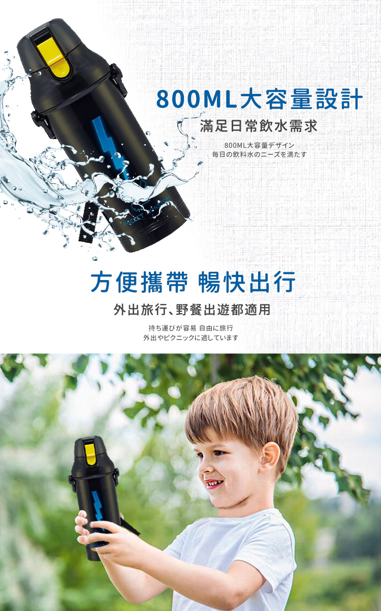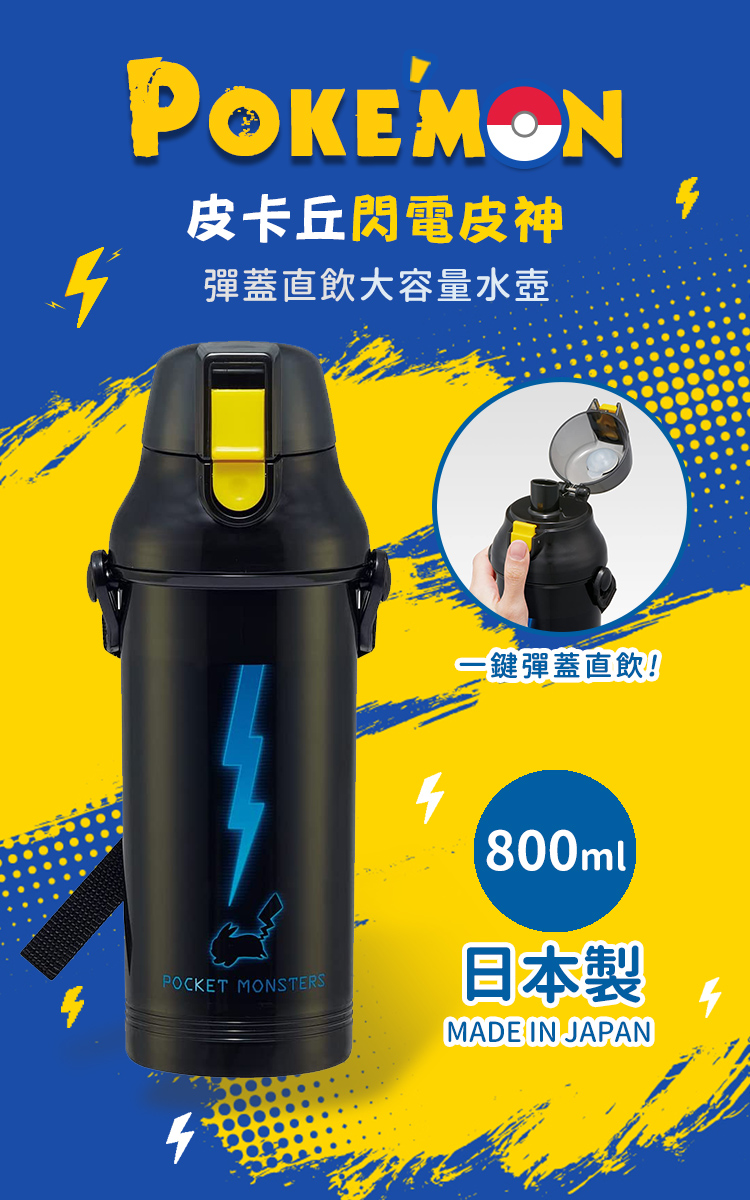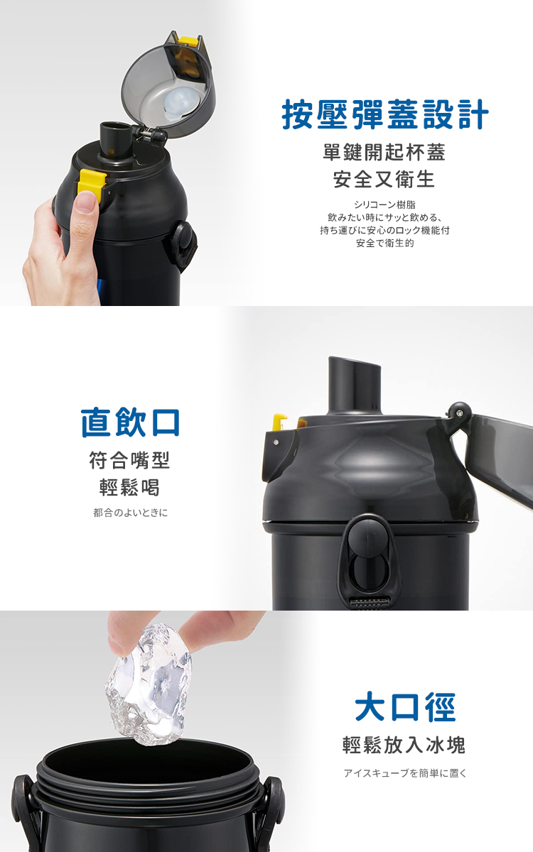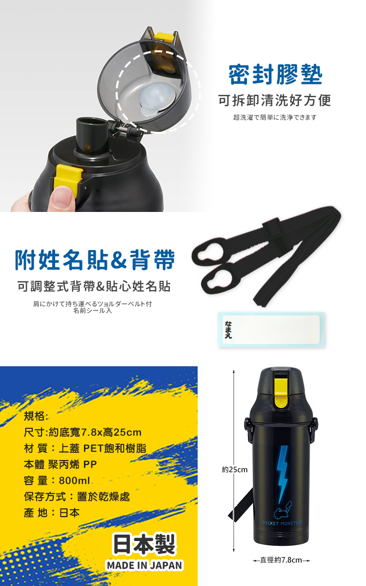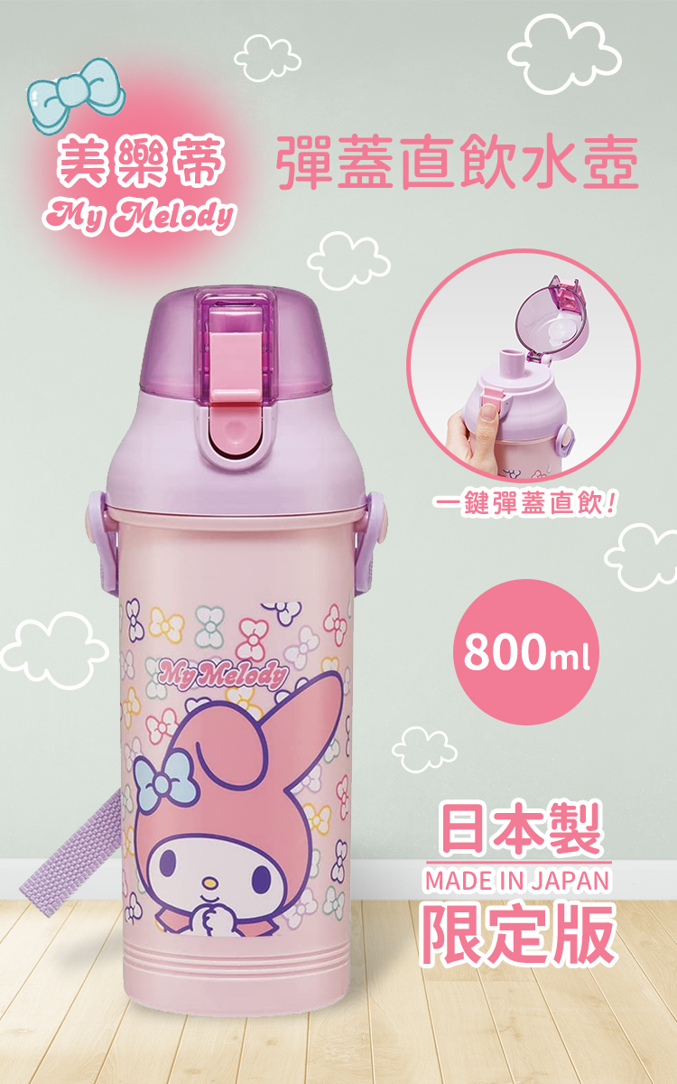 ●日本製 正版授權●大容量彈蓋直飲隨身壺●外出旅行、野餐出遊適用●Ag+銀離子抗菌加工 ●按壓彈蓋直飲式 寬口徑好放冰塊●附姓名貼紙、可拆式斜揹帶
