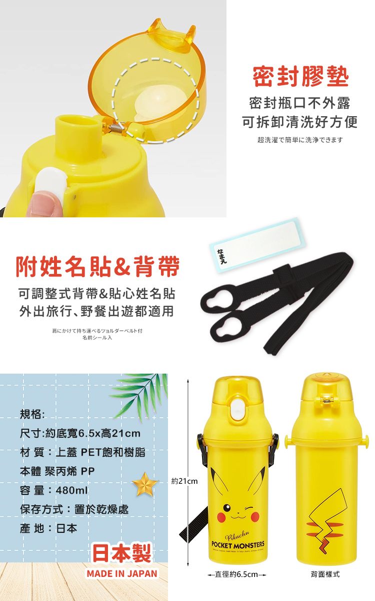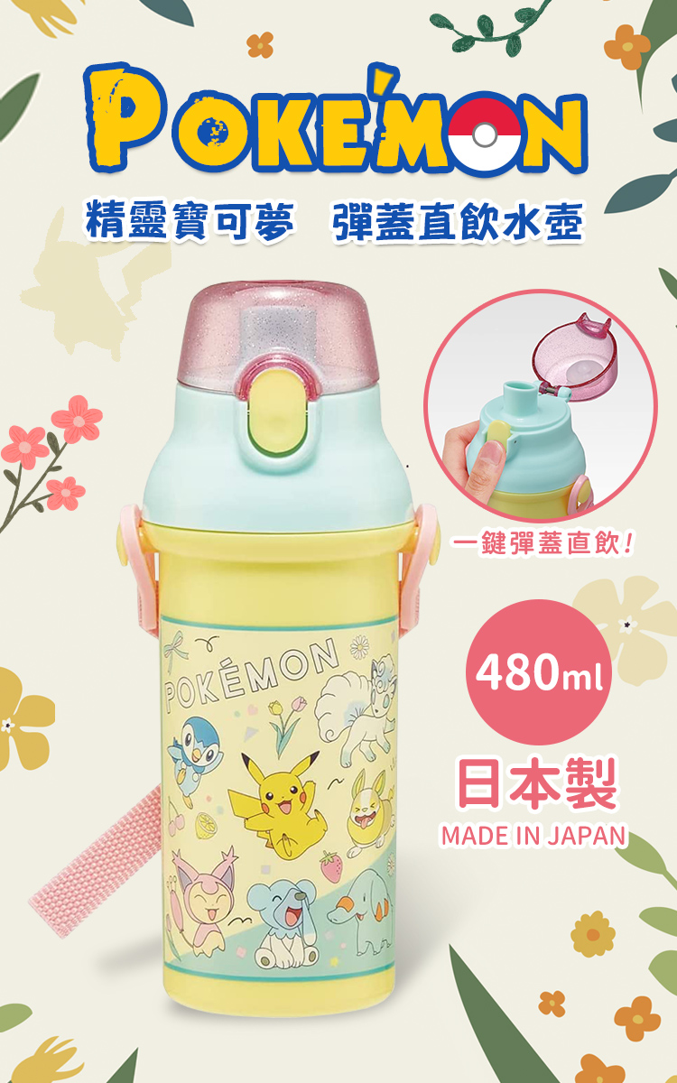 ●元氣皮卡丘 彈蓋直飲水壺 480ML