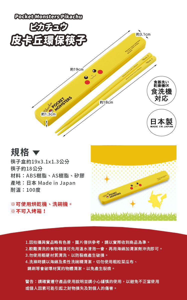 ●新版-皮卡丘 環保筷子 18CM