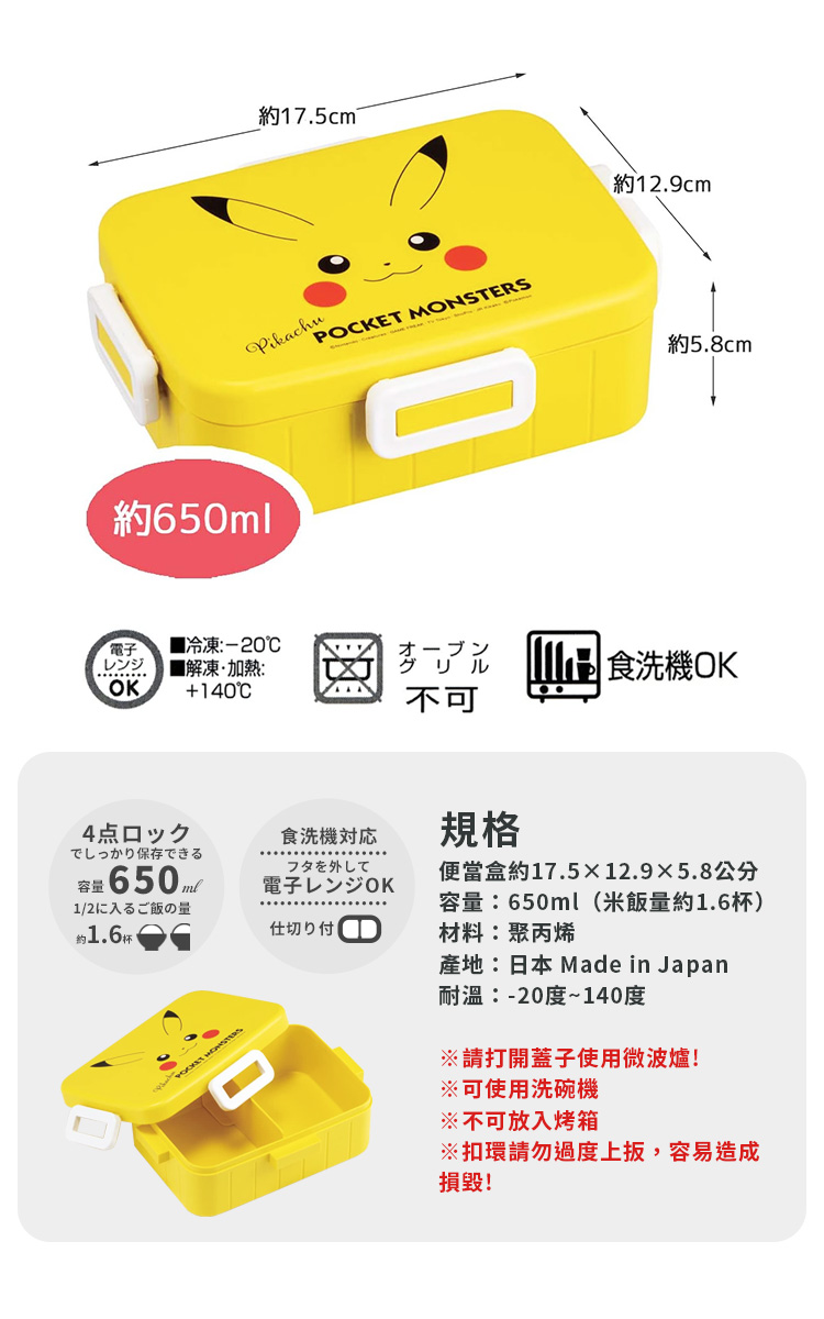 ●元氣皮卡丘 便當盒 650ML