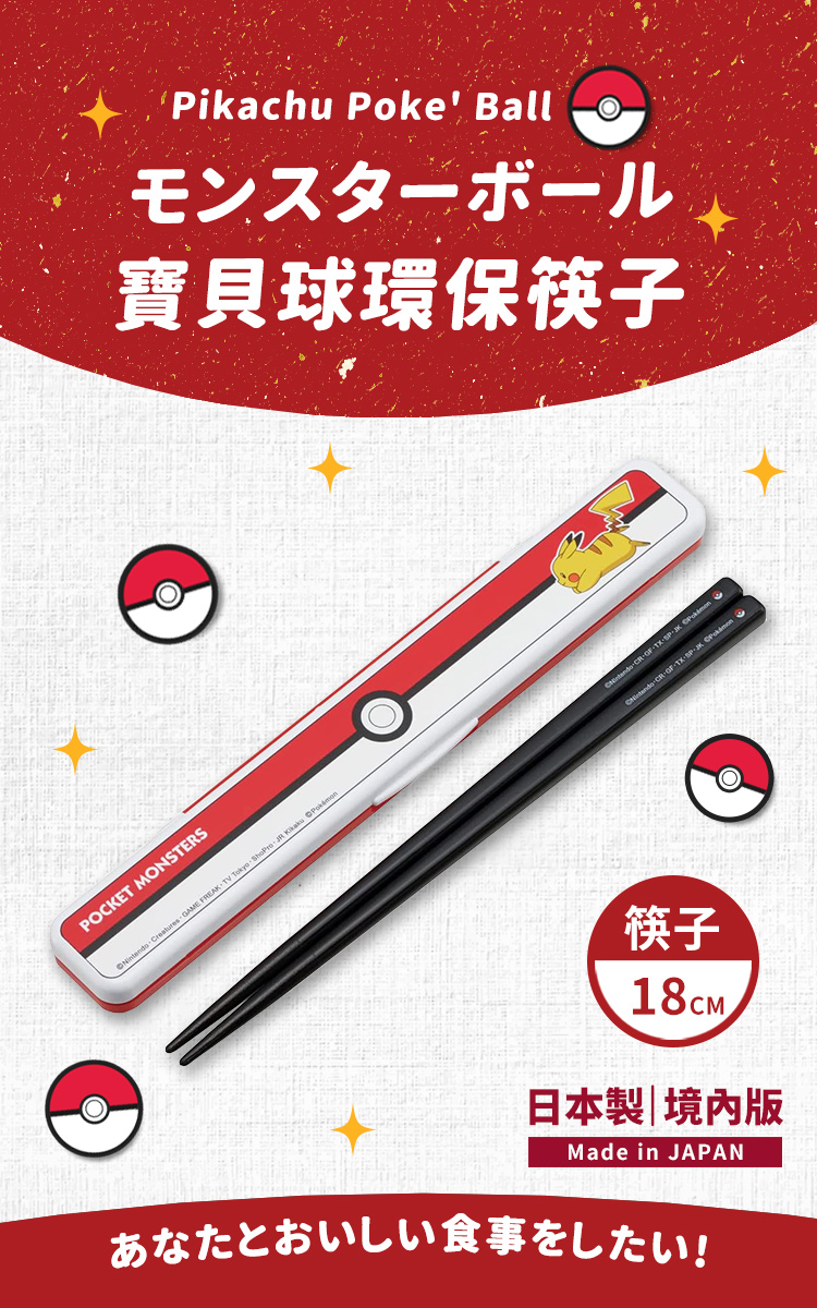 ●皮卡丘寶貝球 環保筷子 18CM
