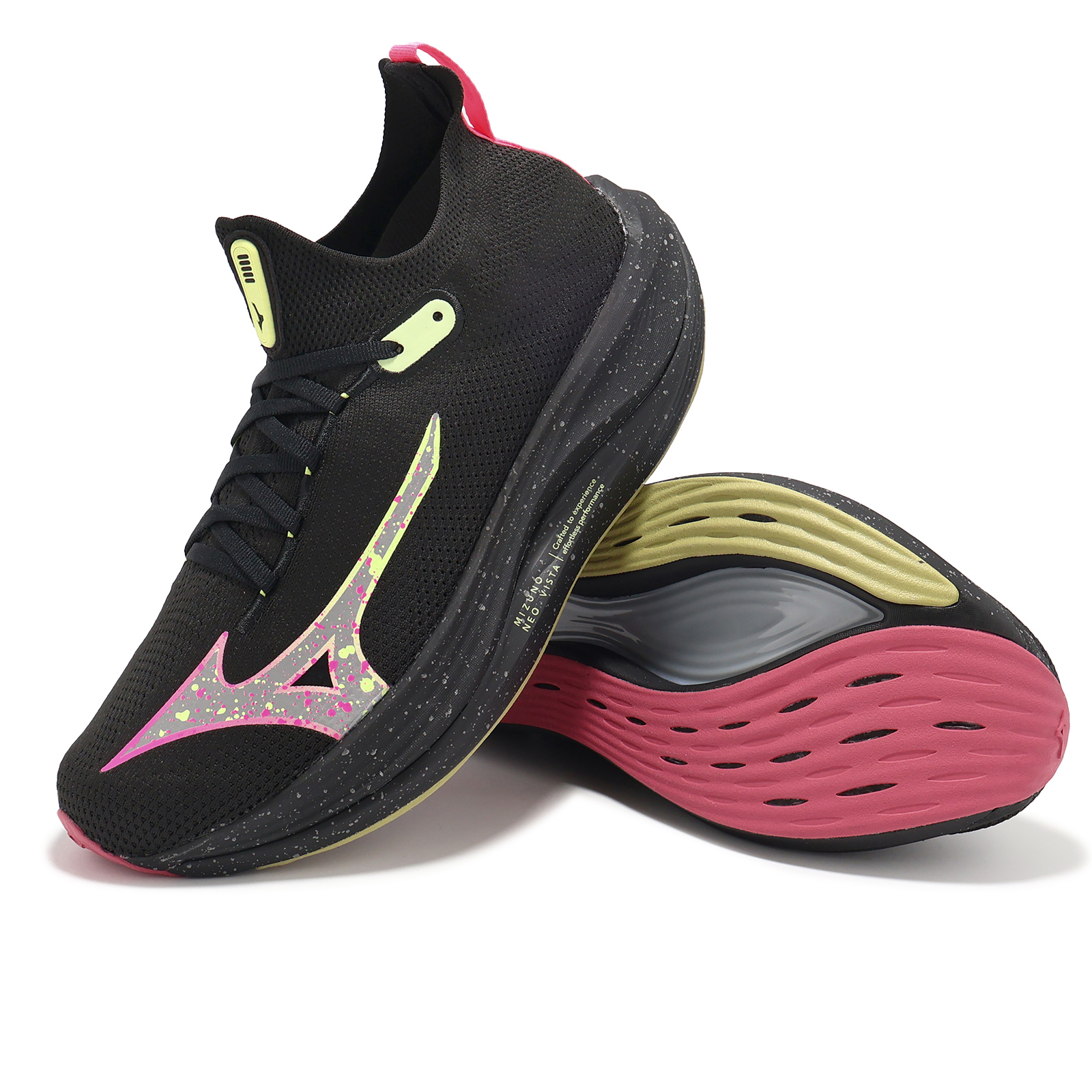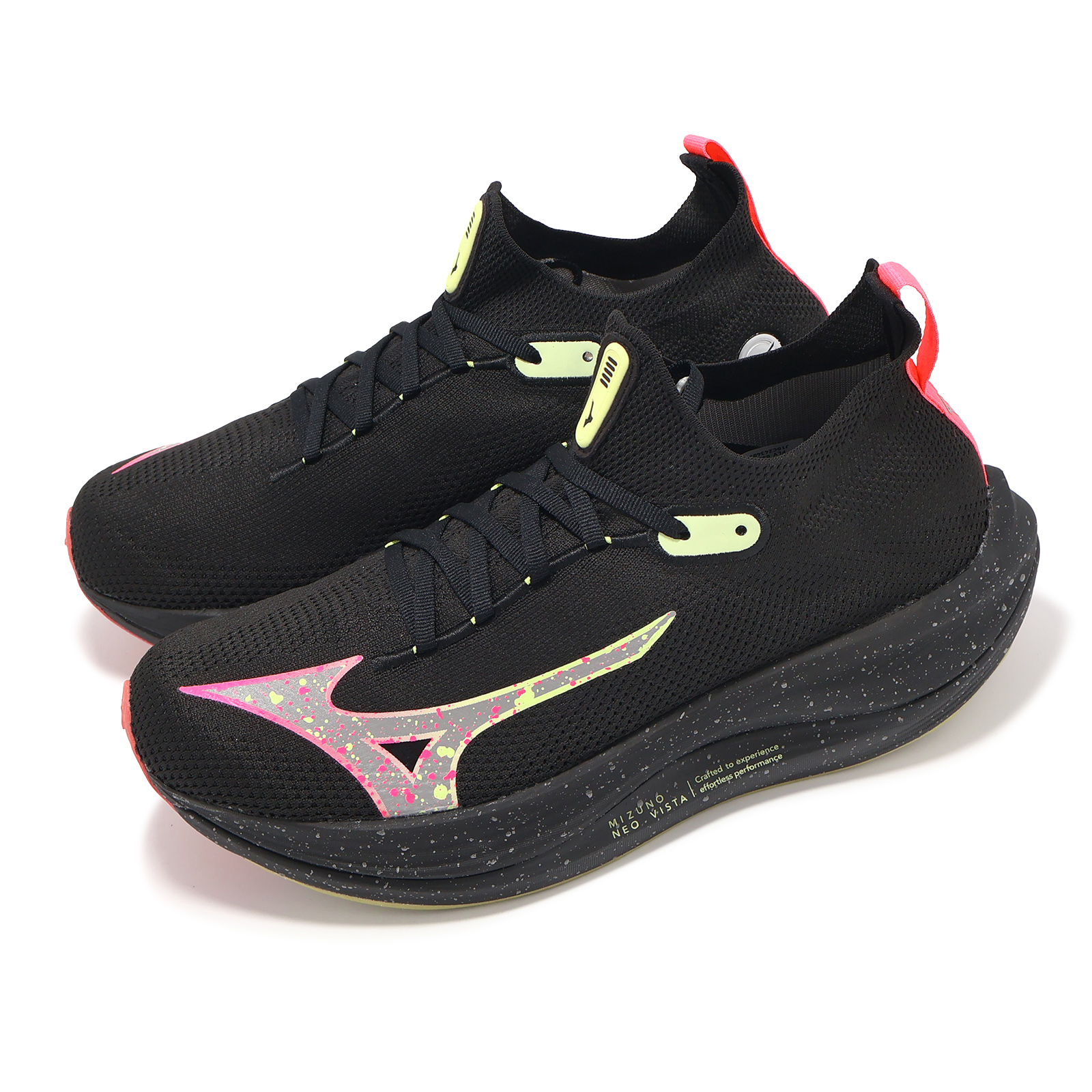 品牌: MIZUNO型號: J1GC2434-03品名: Neo Vista版型: 襪套式, 建議大半號* 鞋面使用針織網布搭載襪套式設計,提供雙足透氣舒適感,並給予輕量腳感與提高貼合度。
