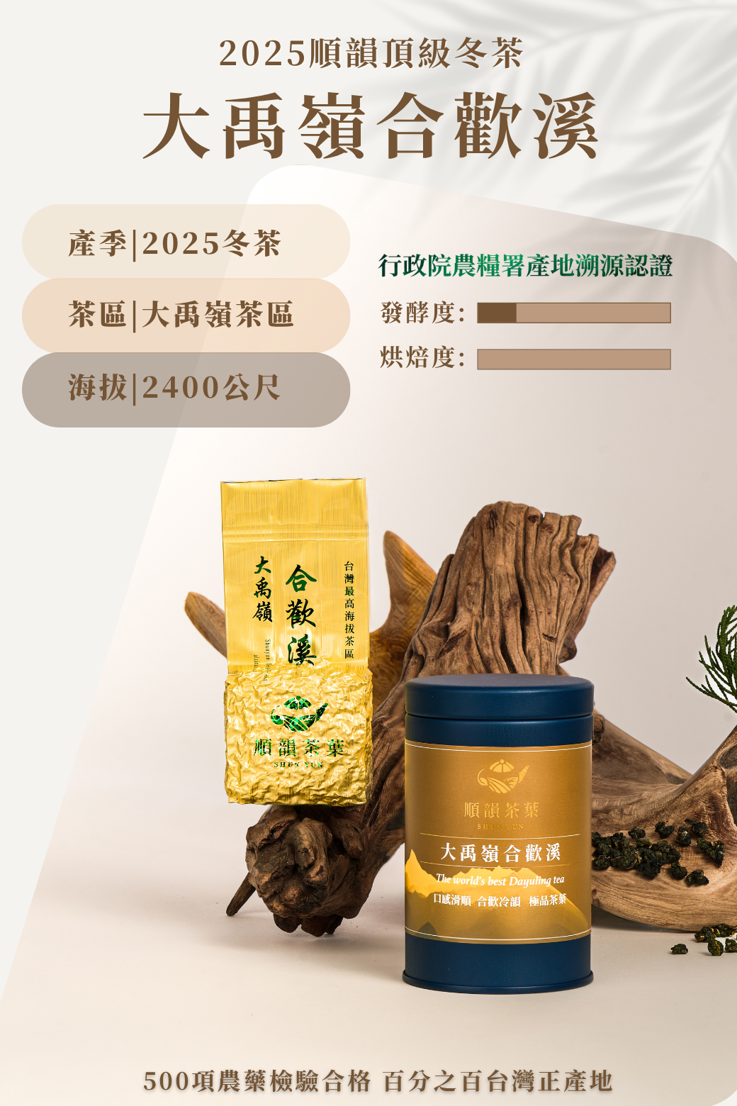 大禹嶺合歡溪冬茶種植於合歡溪上游的原始林茶園海拔近2400公尺,引用純淨的合歡溪溪水灌溉長年低溫導致茶樹需要更長時間生長,吸收更多水分及營養採收後經過專業製茶師傅製作能完整保留茶葉本身的豐富養分及最原始的山泓氣