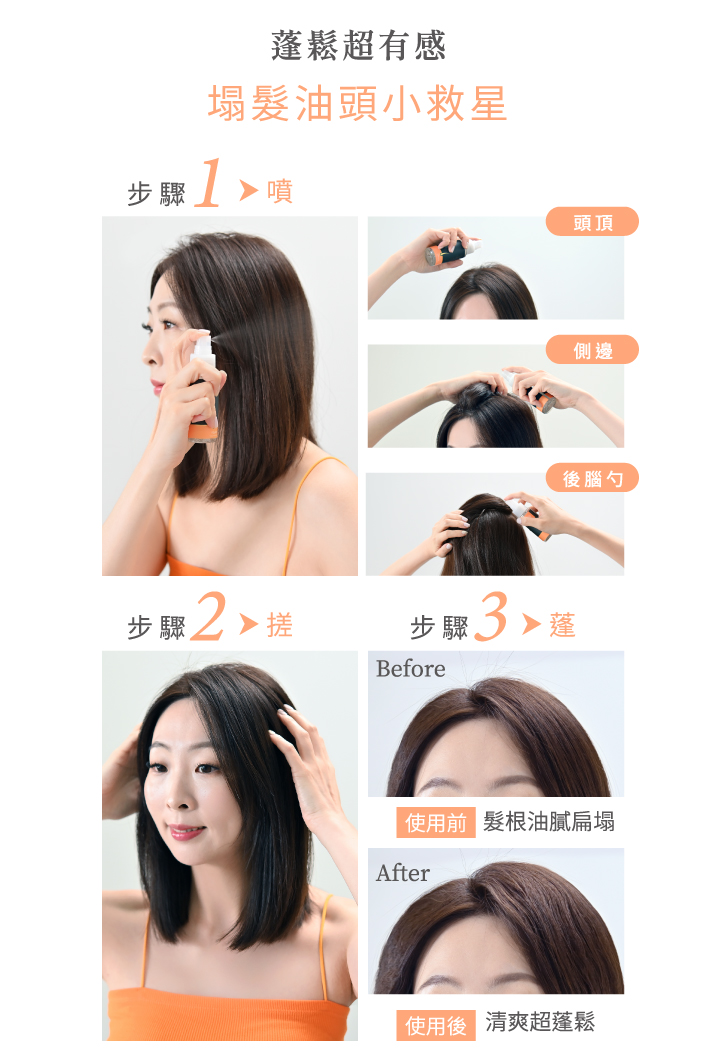✧用法:於洗髮後擦乾頭髮,將本產品噴於頭皮,並以指腹輕揉按摩,再以吹風機吹乾即可