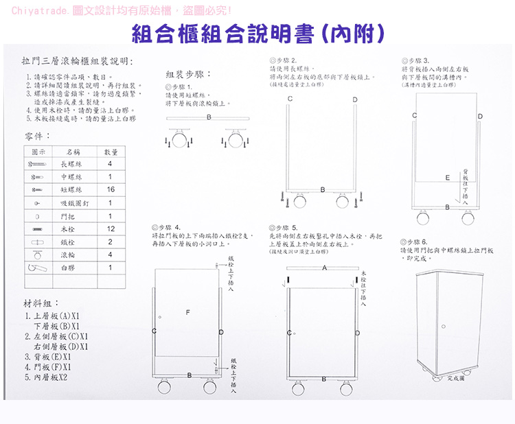 ●超可愛多功能三層滾輪櫃