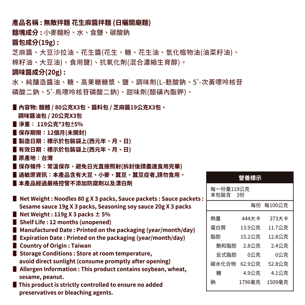 規格:花生麻醬116gx3包±5%/袋(3入/袋)、青花椒麻107gx3包±5%/袋(3入/袋)