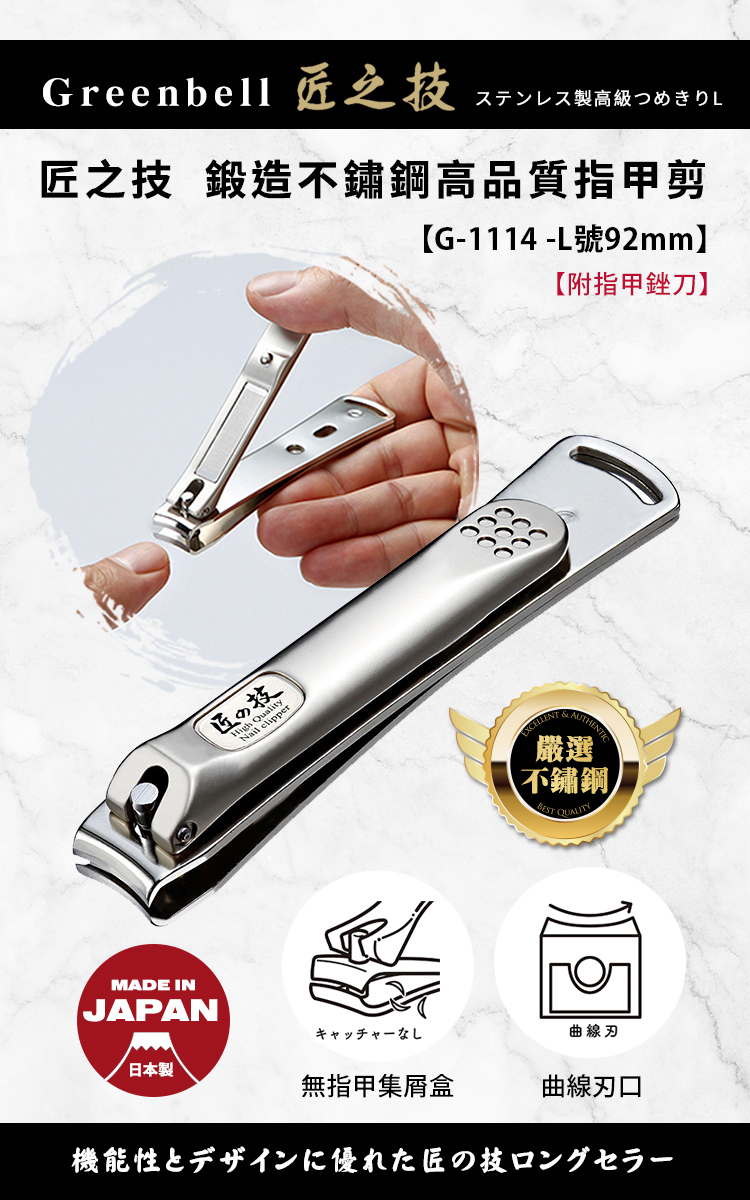 榮獲日本優秀設計大獎,各大部落客推薦,一生中必買指甲剪。每一把指甲刀片都由一位技術熟練的職人手工專業鍛造而成,採用精心挑選的不鏽鋼,通過高硬度淬火和雙刃技術,具有卓越的耐用度、鋒利度與舒適感,精湛細節盡顯匠心。