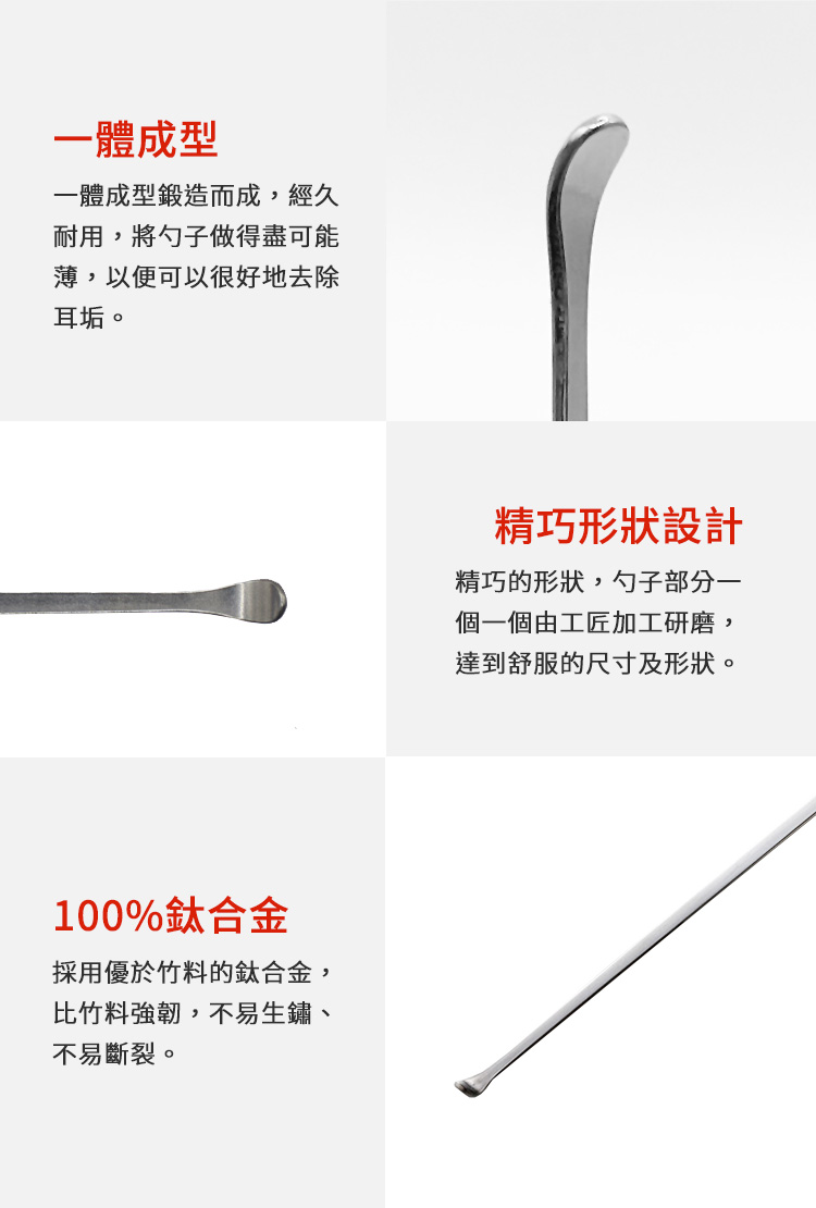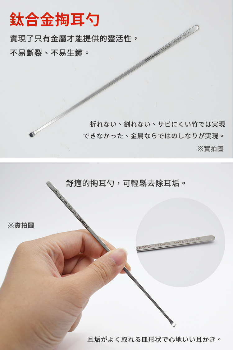 ●採用優於竹料的鈦合金,最上級的掏耳勺,鈦合金比起竹料強韌,大幅降低折斷的可能性。
