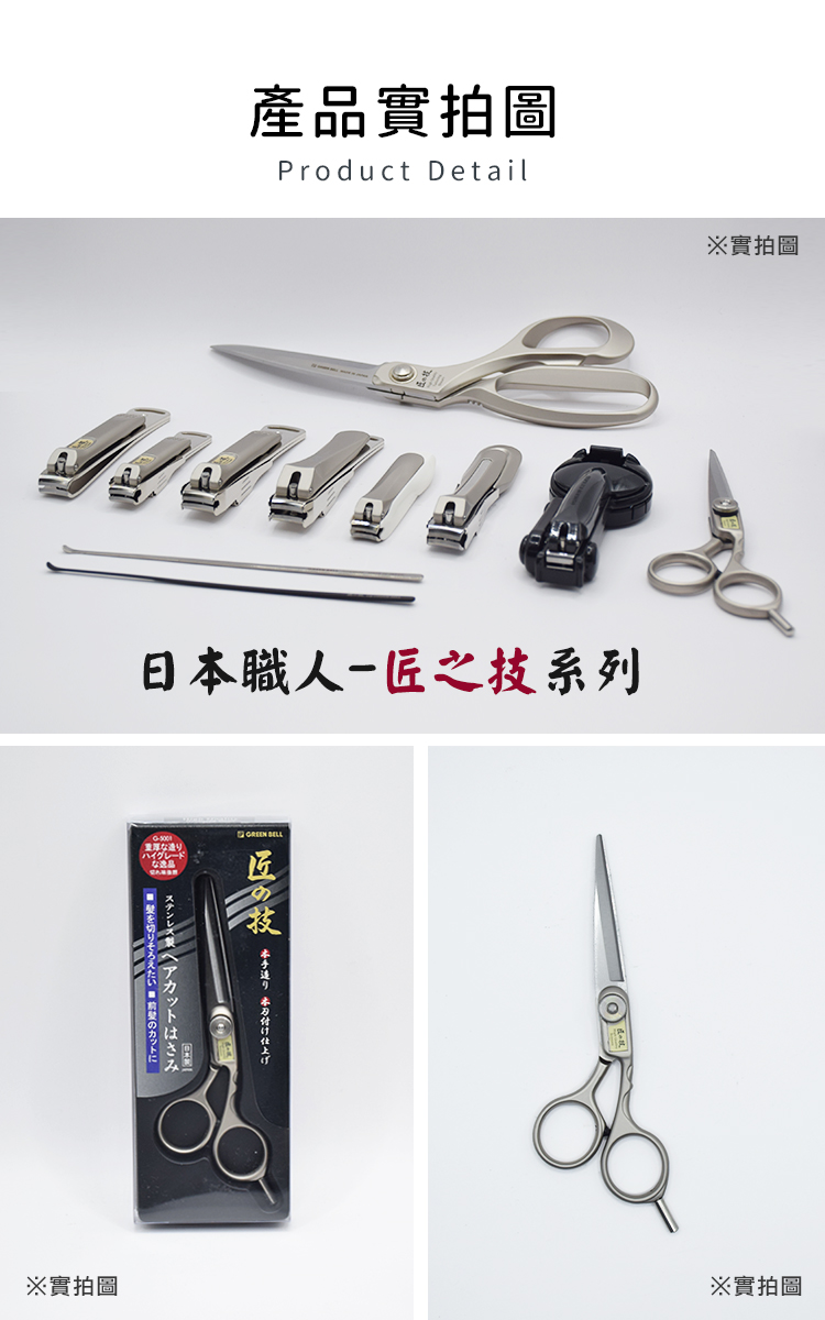 關於GREEN BELLGREEN BELL品牌起源於日本岐阜縣的關市,旗下有許多知名世界品牌如 匠之技/Seki EDGE/PSG/+QQ/Mr.Barber/SE Grooming/BaBy/other等,皆在刀具產地-岐阜縣關市的工廠裡,「不會斷、不會彎且很銳利」的品質讓[關刀]品牌的口碑流傳到全國,至今700年以上,目前已經有菜刀、剪刀、刮鬍刀、指甲剪等多種產品。