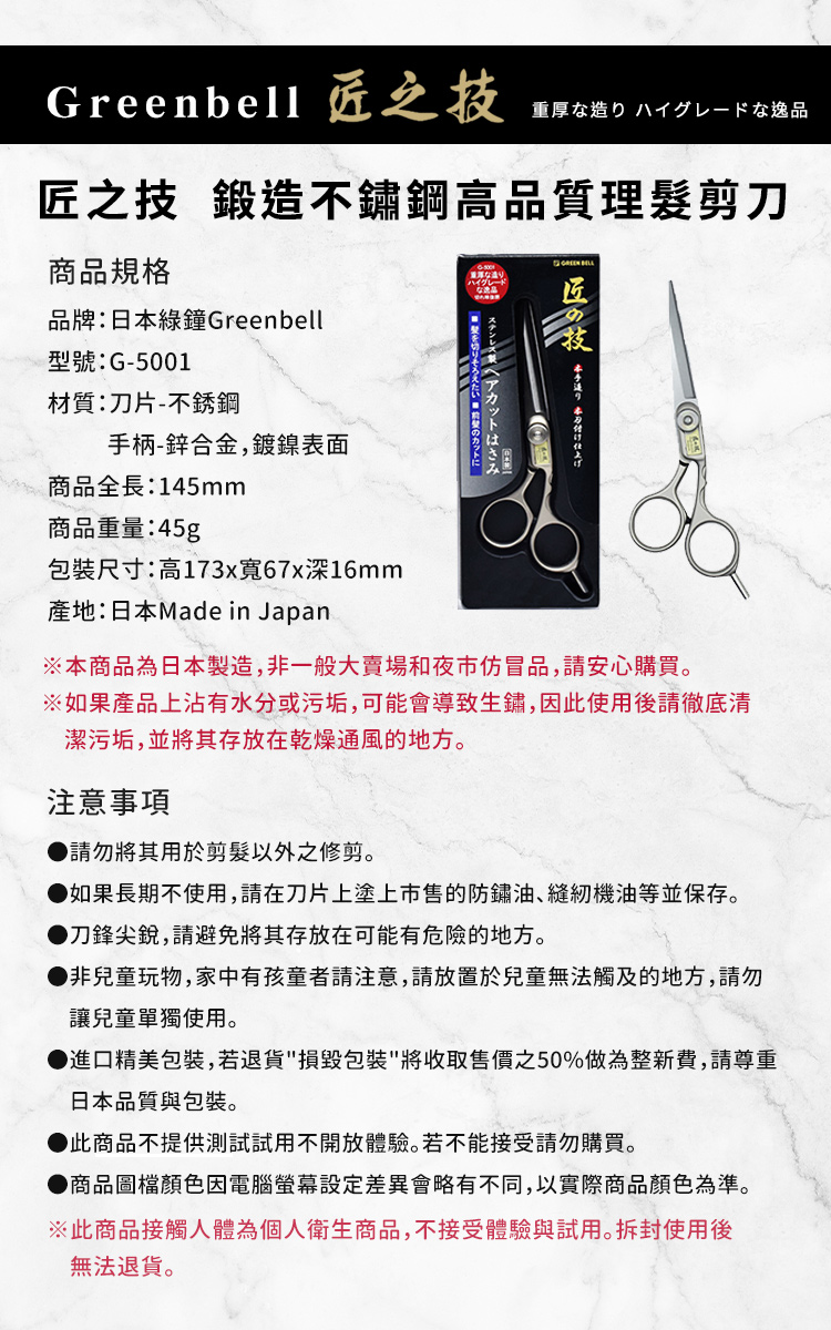 品牌:日本綠鐘Greenbell型號:G-5001材質:刀片-不鏽鋼 手柄-鋅合金,鍍鎳表面商品全長:145mm商品重量:約45g (手量誤差±5%)含包裝重量:約72g (手量誤差±5%)包裝尺寸:高173x寬67x深16mm產地:日本Made in Japan