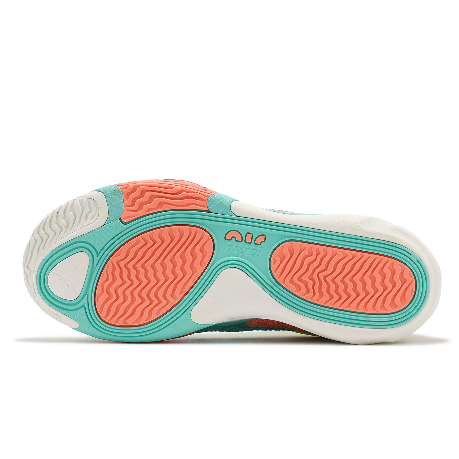 * 中底搭載全腳掌 Air Strobel 氣墊及鞋面塊狀泡棉設計,在快速彈跳過程中能有效減緩地面給予雙足的衝擊力。