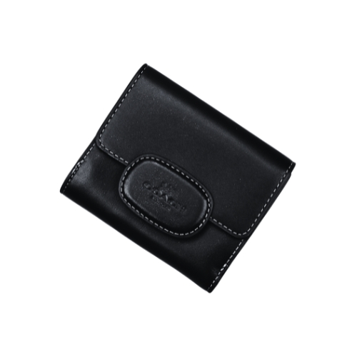 ★尺寸:寬11CM高10CM側邊厚2CM ★規格:雙摺釦式開合,內置單格鈔票夾/8格卡片夾,外部正面一T摺皮飾橢圓釦式翻合零錢袋