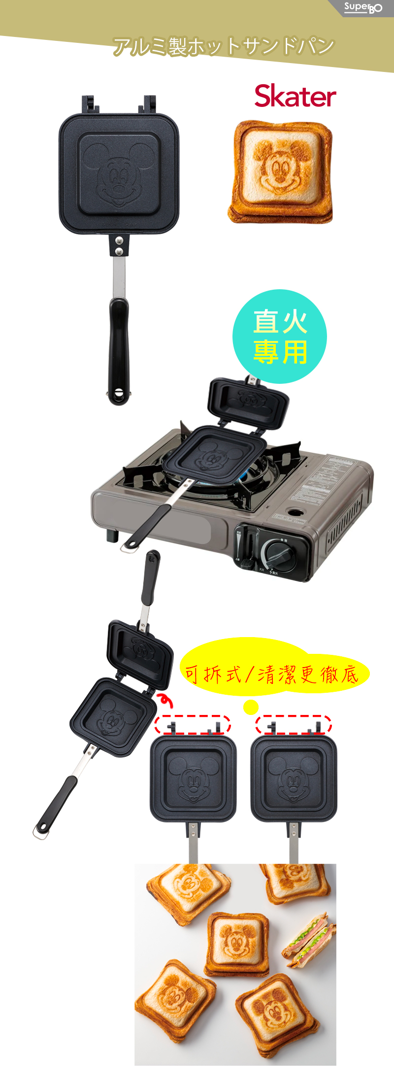 ◆卡通可愛圖案熱壓吐司烤盤。◆可愛圖案,增加小孩食慾。◆上下連接部份可拆卸,易於各種操作及清洗。◆家裡或戶外烤肉、露營皆適用。