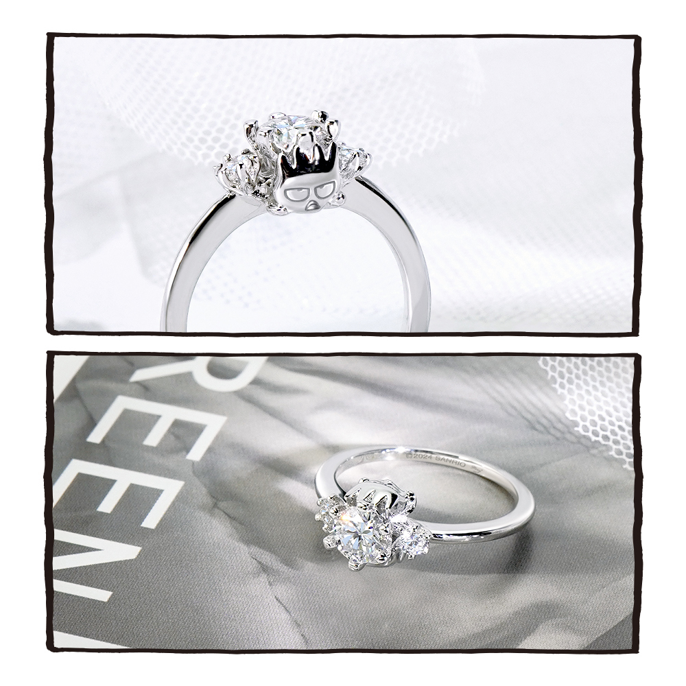 ◆材質 : 925純銀,精鍍18K金,2.5mm圓型晶鑽,50分莫桑石◆顏色 : 白K金◆尺寸 : 酷企鵝約5.46x5.04mm;花丸約4.82x3.91mm◆戒圍 : 國際圍#9~#12◆包裝 : 三麗鷗精裝書本盒+絨布袋+紙袋+雷射防偽貼紙+商品保固卡+GRA證書